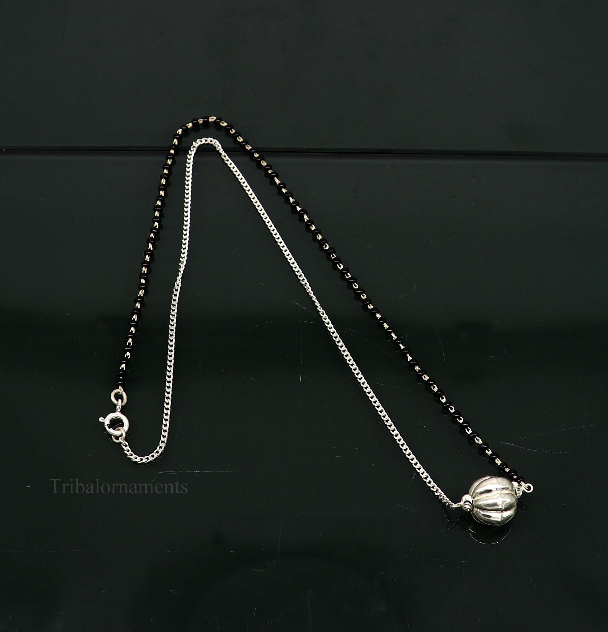 925 sterling silver black beads chain necklace, gorgeous small bead pendant, traditional style chain beaded mangalsutra necklace set231