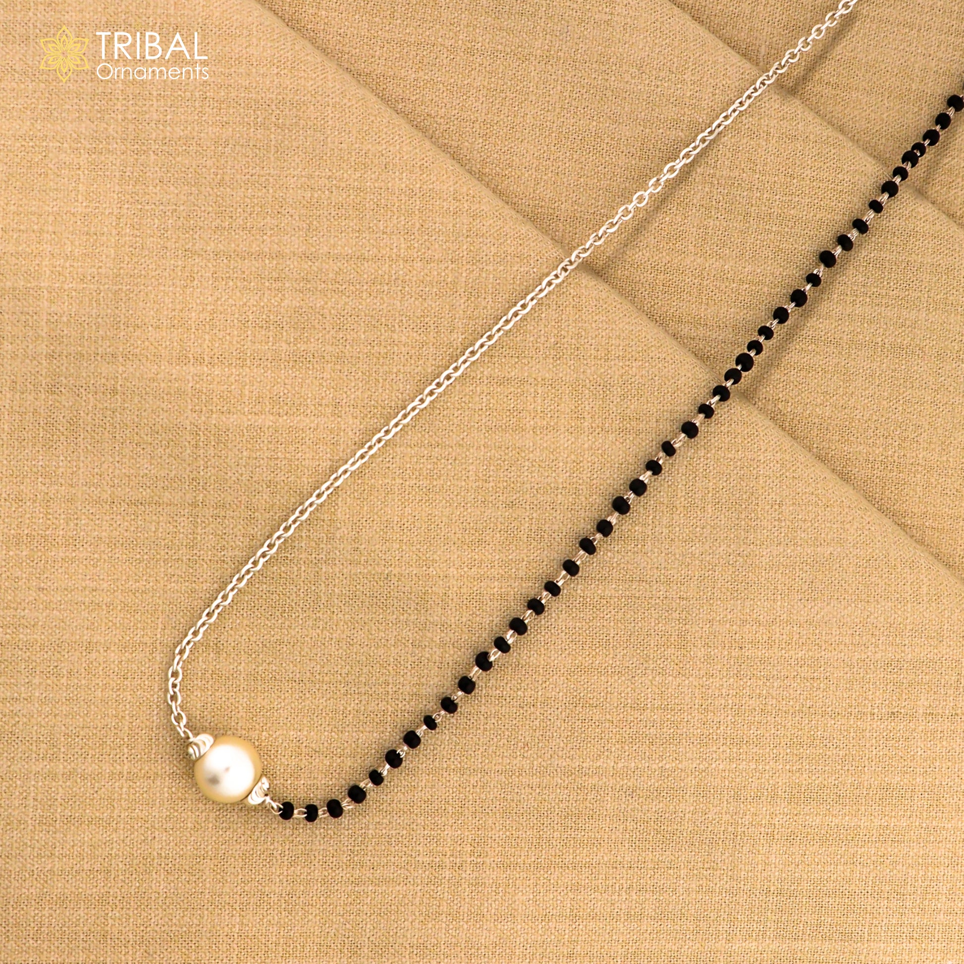 925 sterling silver black beads chain necklace, gorgeous small pearl pendant, traditional style chain beaded mangalsutra necklace set230