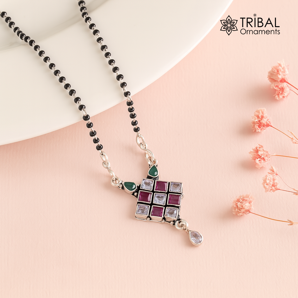 925 sterling silver black beads mangal sutra chain necklace, Simple delicate pendant, traditional brides Mangalsutra chunky necklace ms11