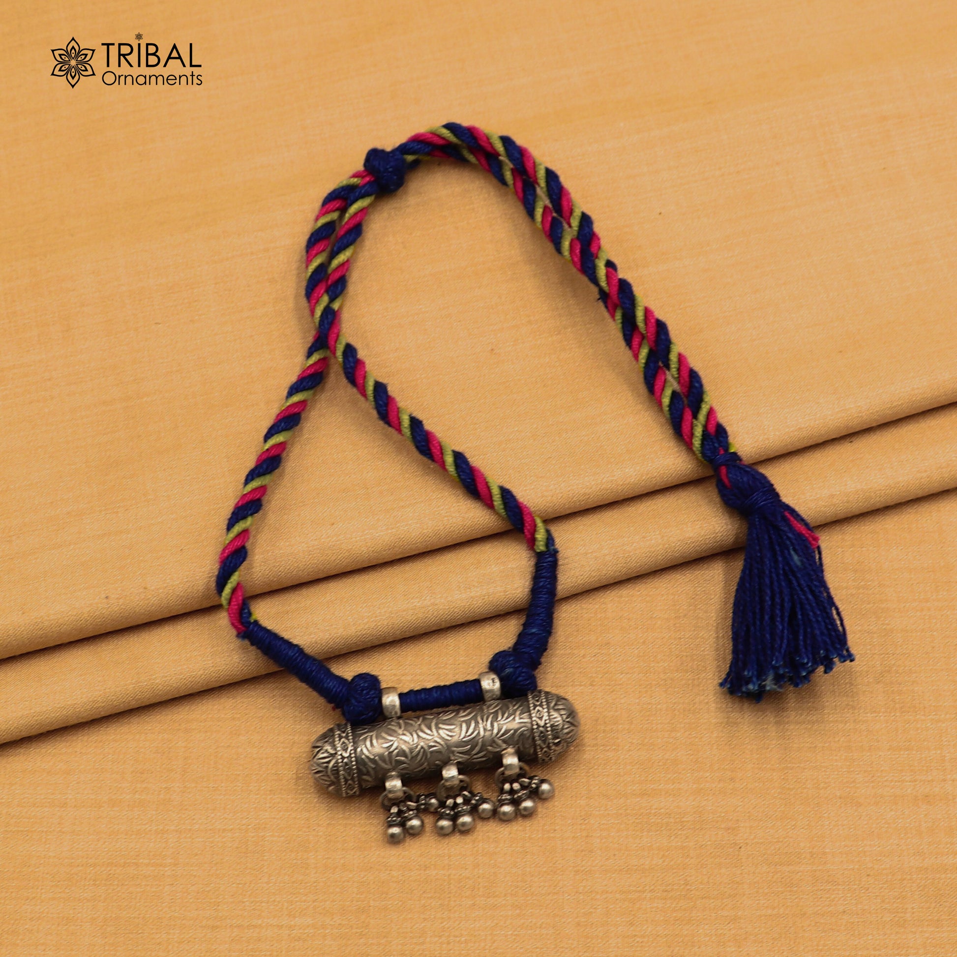925 sterling silver chitai work drop dangle amulet style thread (dori) necklace traditional jewelry set792