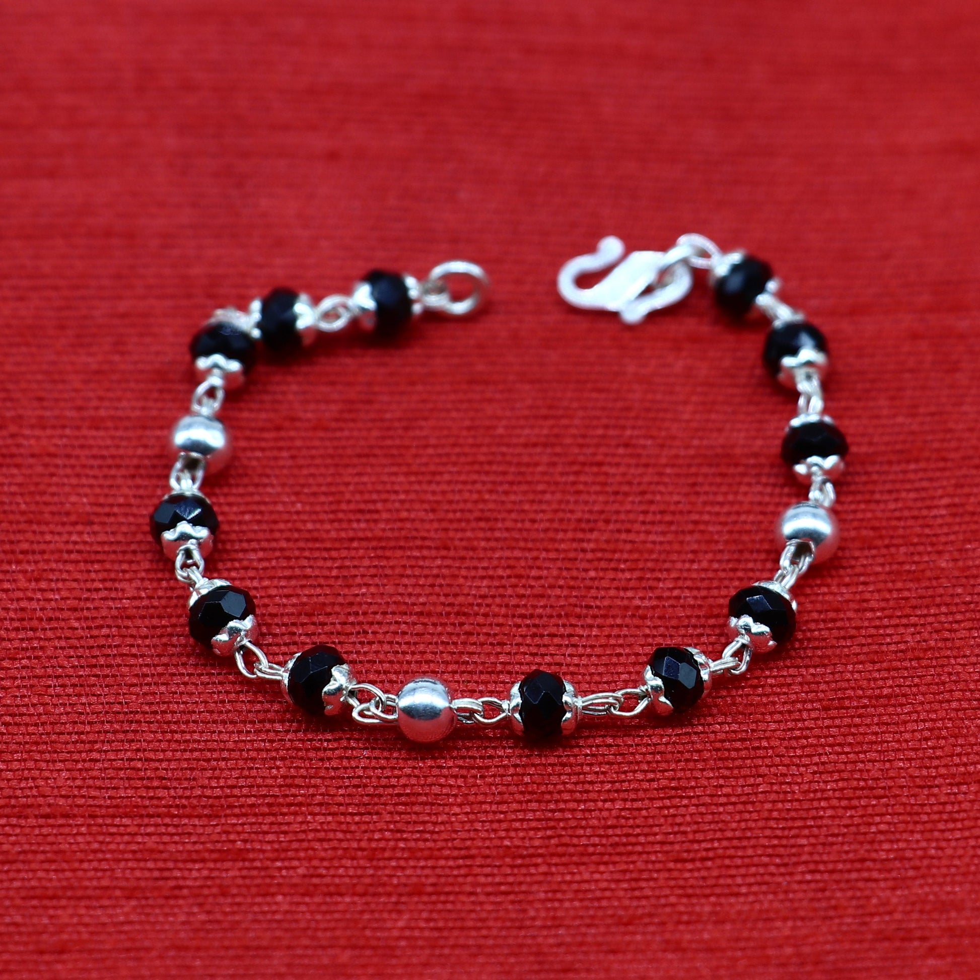925 sterling silver customized black beads Nazariya bracelet, protect from evil eyes, new born baby bracelet stylish jewelry from india bbr9