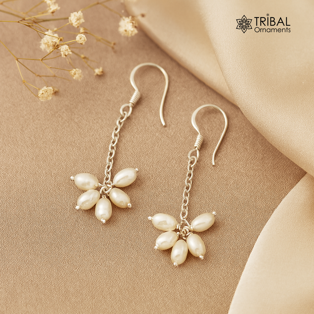 925 sterling silver customized fancy stylish hoops earring, fabulous 4mm fresh water pearl earring amazing bridesmaid pearl earring ear476