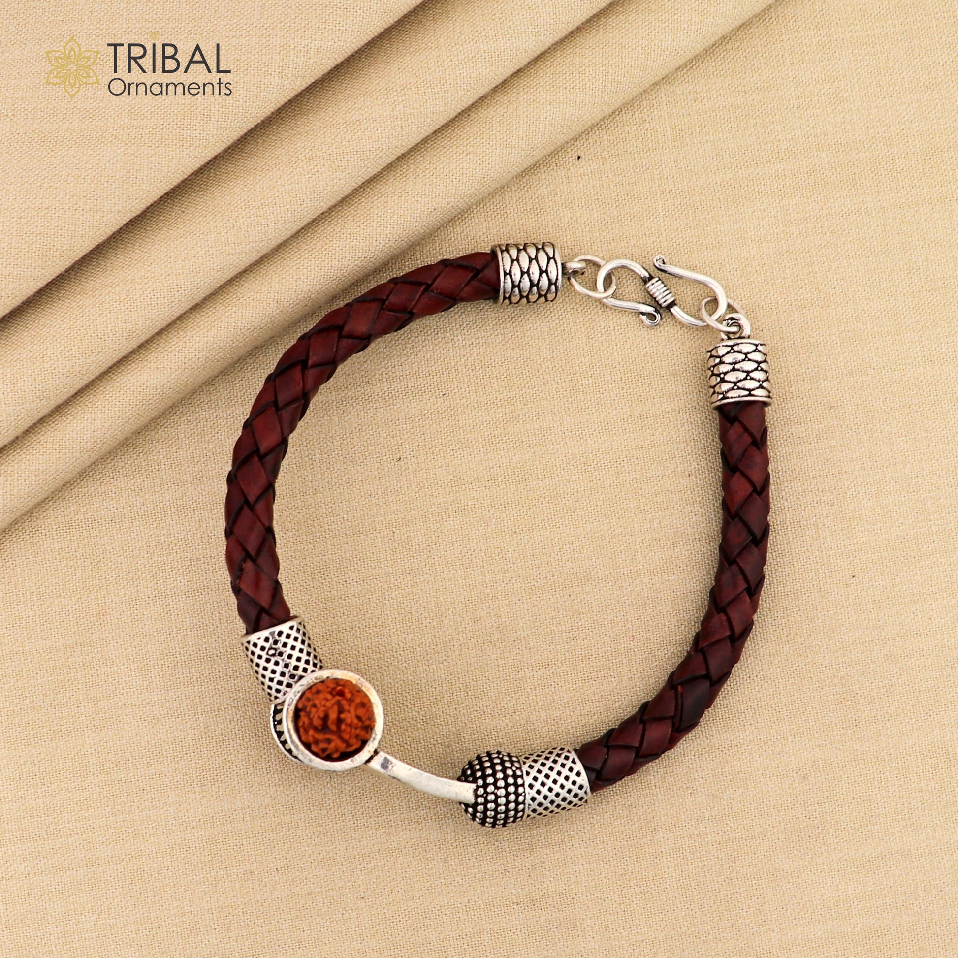 925 sterling silver customized trident design lord Shiva rudraksha bracelet, leather belt trident shiva bracelet best gift for him Rnsbr593