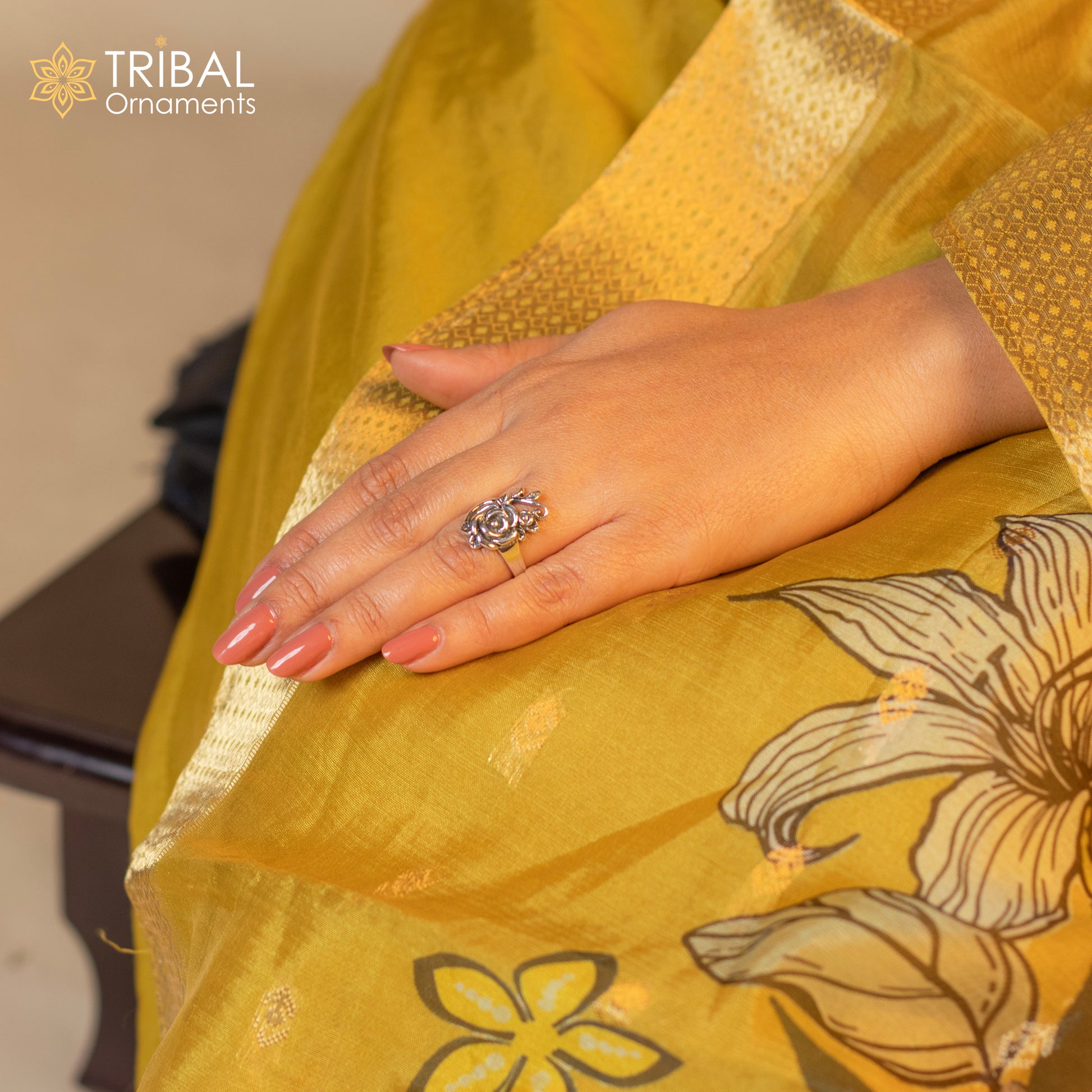 925 sterling silver ethnic flower design ring Jewelry sr770