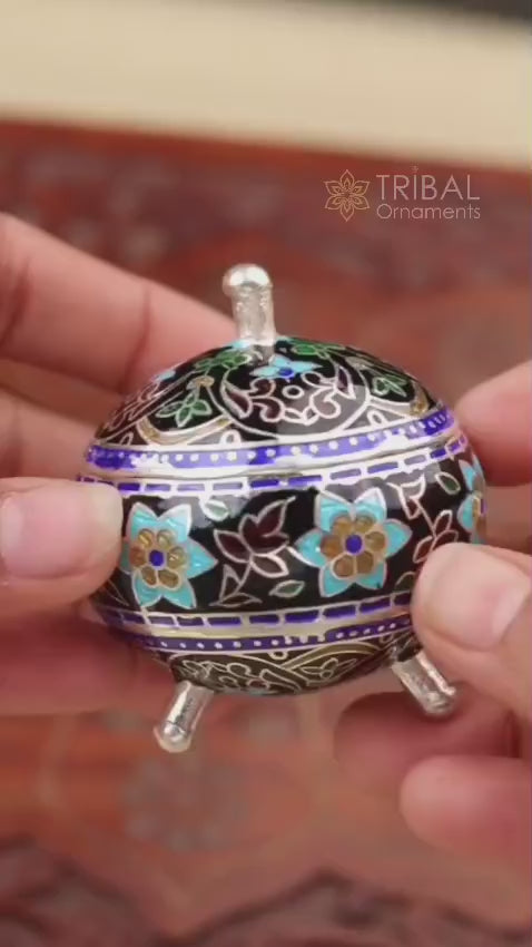 925 Sterling silver fabulous meenakari trinket box, container box, casket box,sindoor box, enamel work customized box stb898
