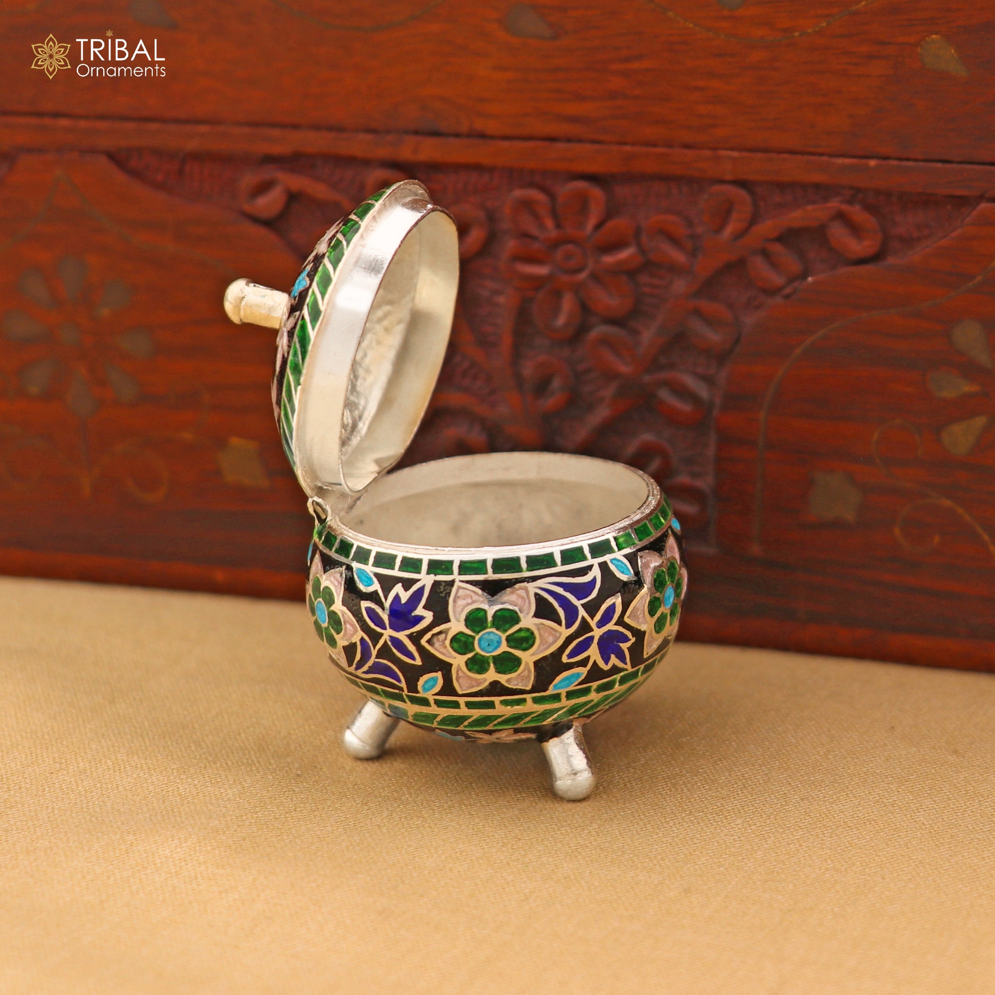 925 Sterling silver fabulous meenakari trinket box, container box, casket box,sindoor box, enamel work customized box stb900
