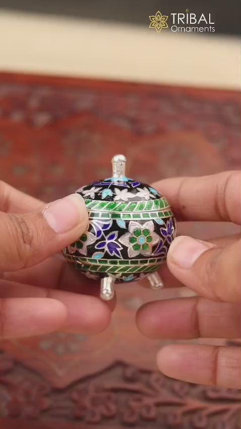 925 Sterling silver fabulous meenakari trinket box, container box, casket box,sindoor box, enamel work customized box stb900
