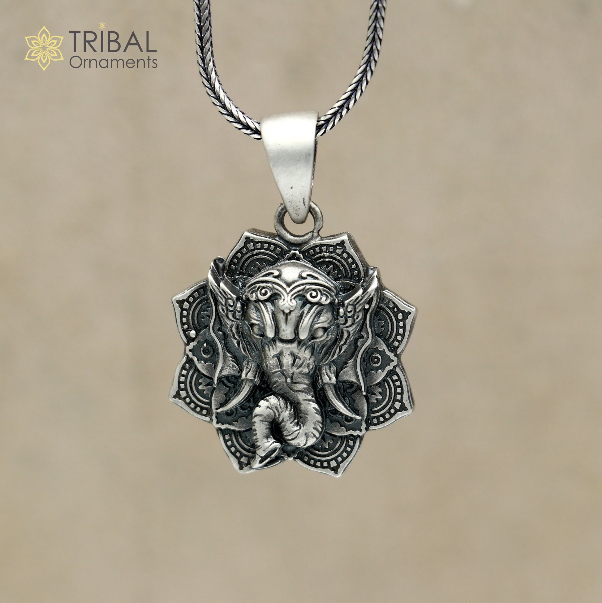 925 sterling silver floral design lord Ganesha Pendant with chain tribal jewellery nsp1051