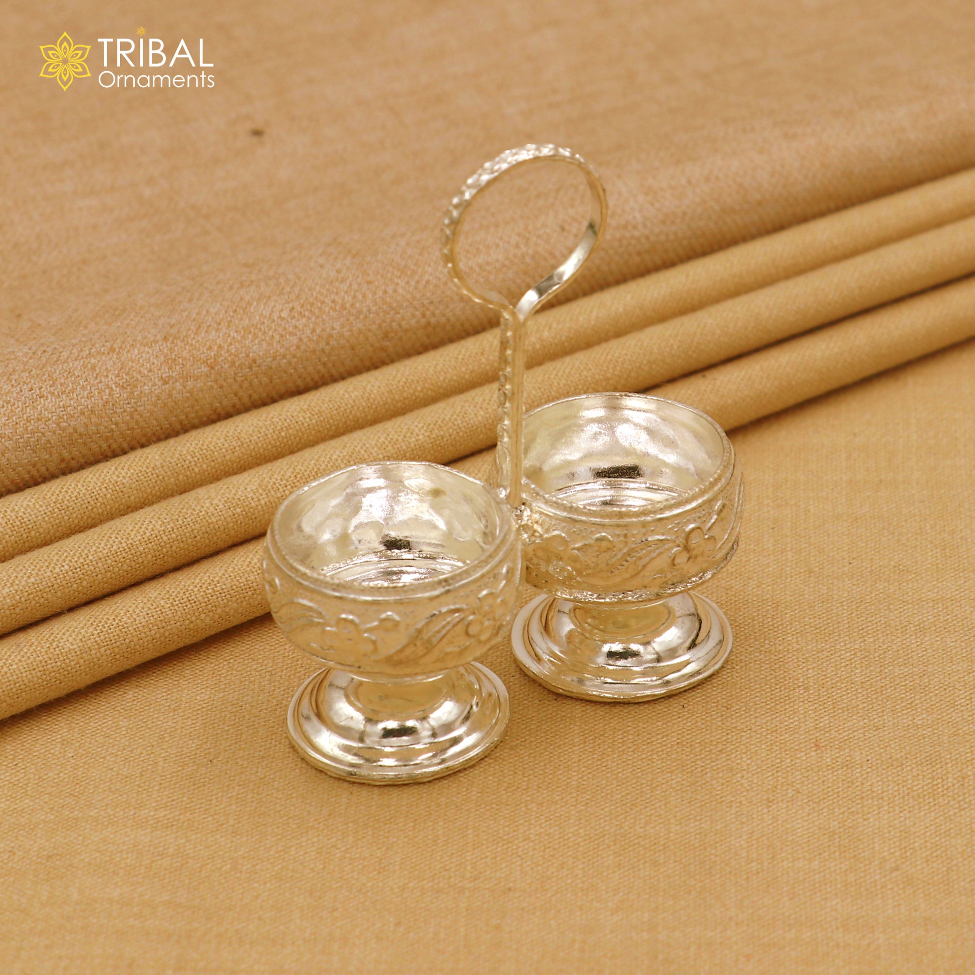 925 sterling silver flower design tilak combo mini bowl, tilak patra, puja utensils, temple article su1355