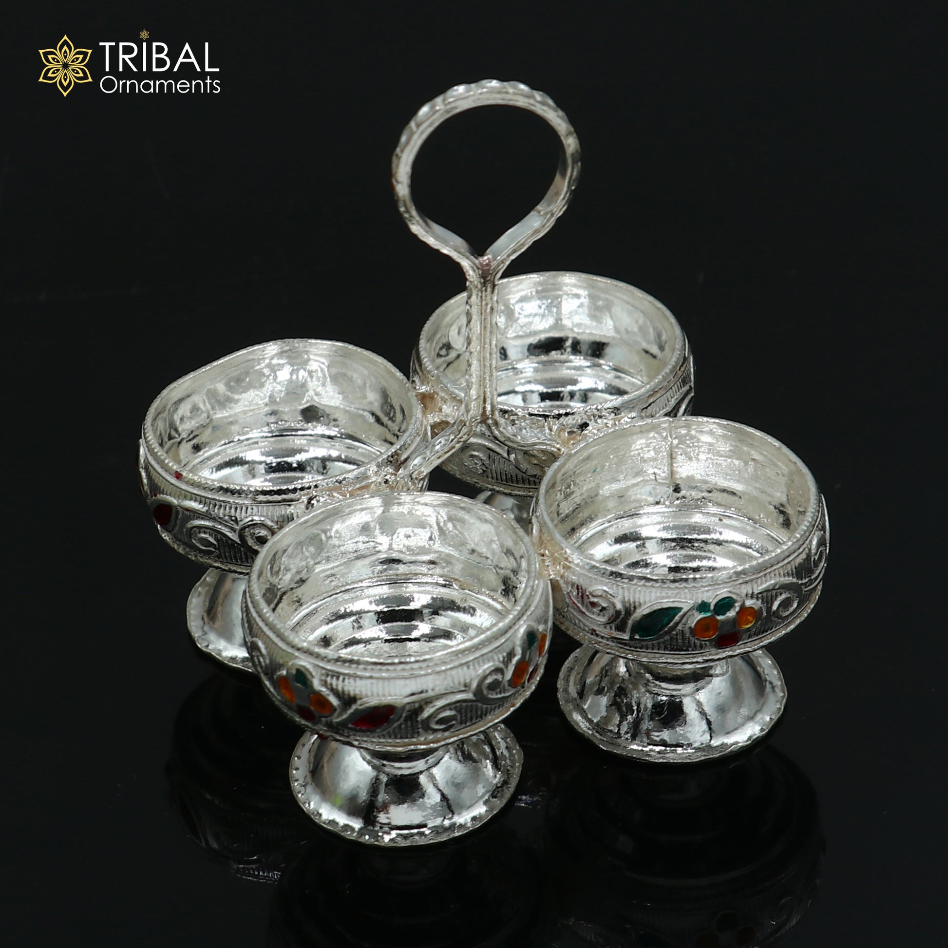 925 sterling silver flower design tilak combo mini bowl, tilak patra, puja utensils, temple article su1356