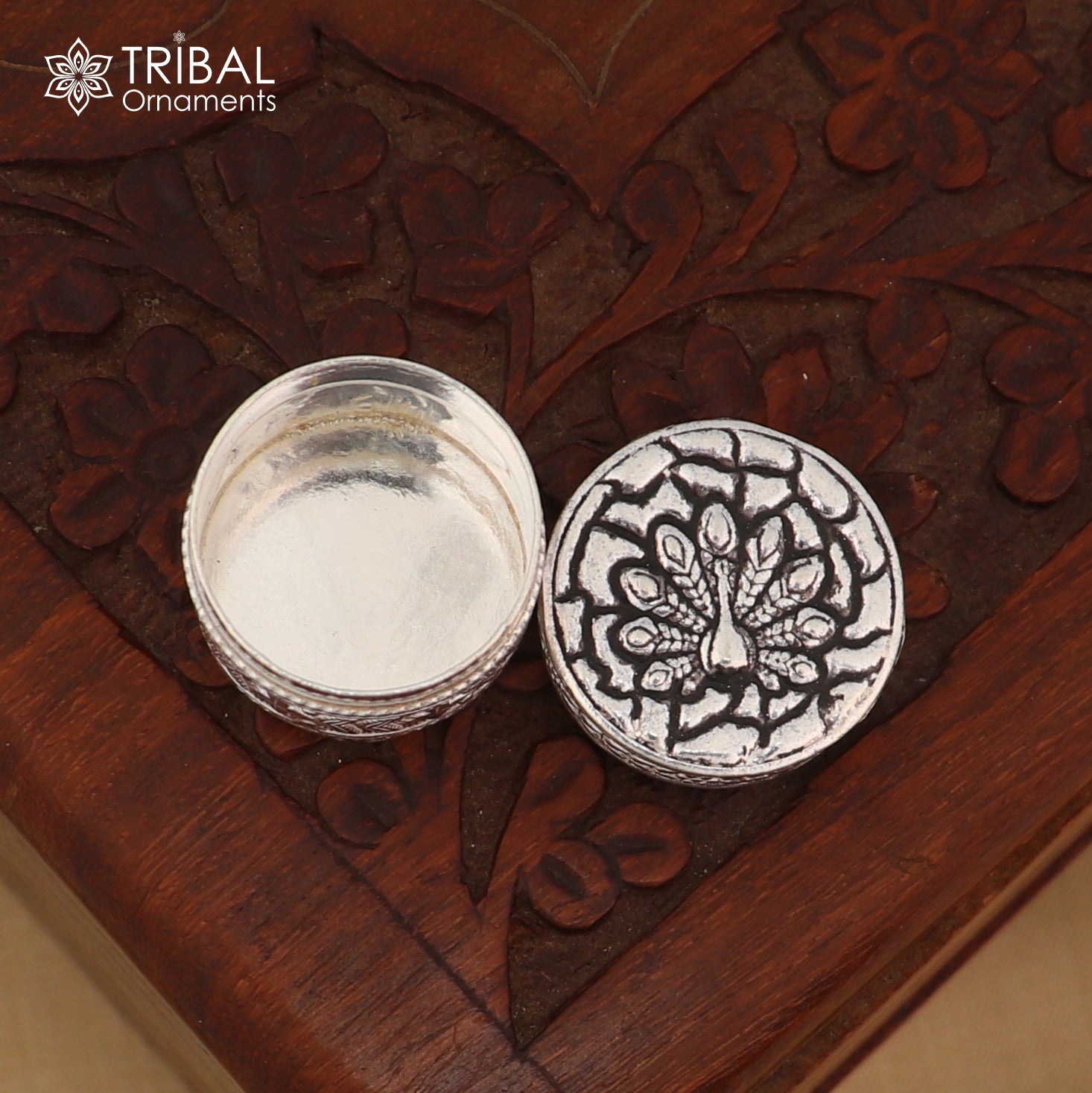 925 sterling silver peacock design trinket, casket, Sindoor box brides jewelry stb888