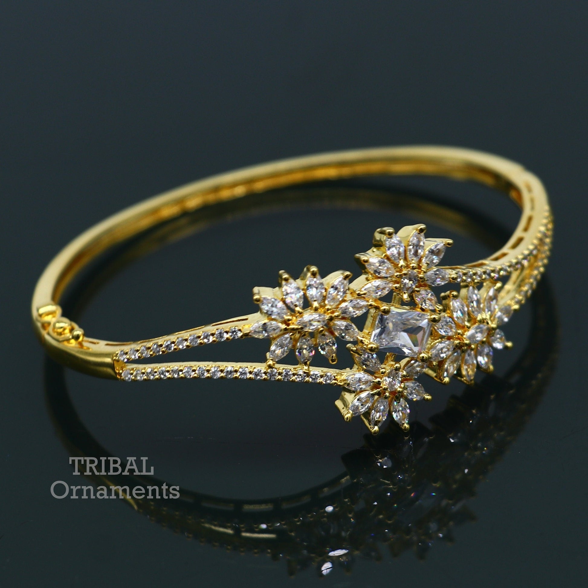 925 sterling silver gold polished handmade amazing cubic zircon stone cuff bangle bracelet kada customized girl's jewelry cuff84