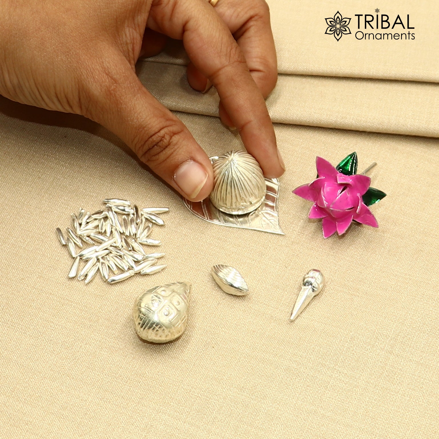 925 sterling Silver Pooja Accessories |Supari| Paan leaves | Rice | Cloves | Coconut | Cardamom| Flower for puja or worshipping su1378