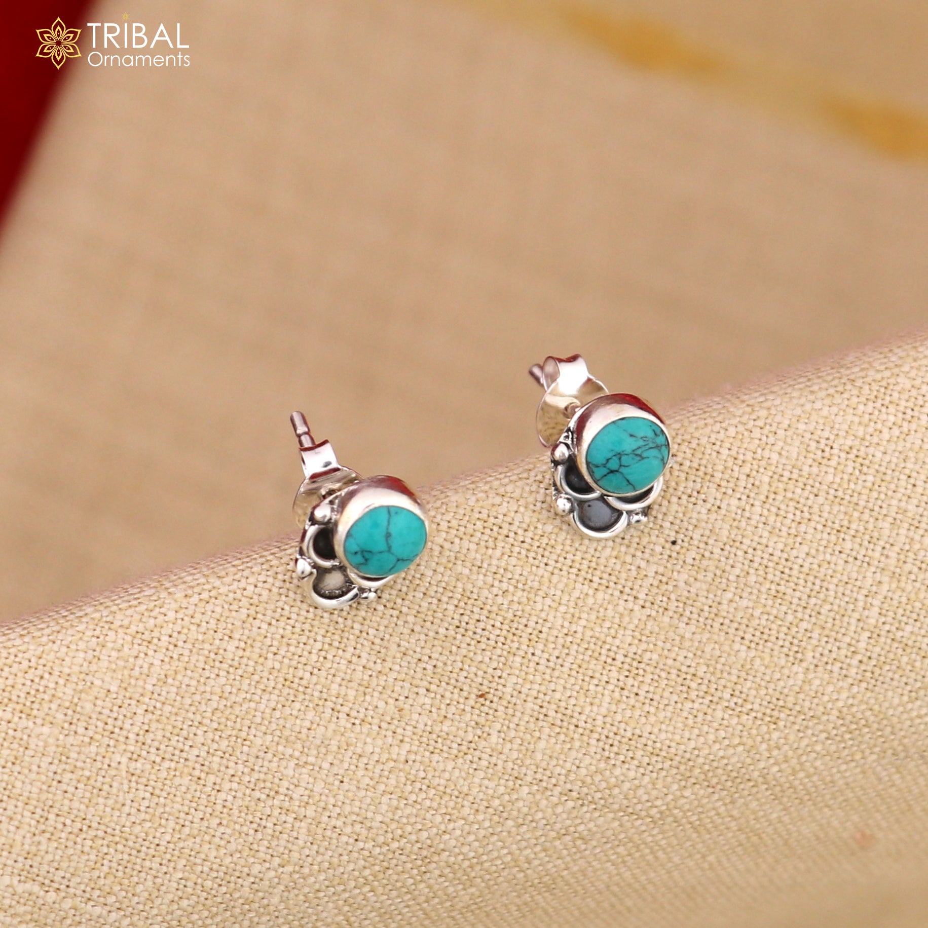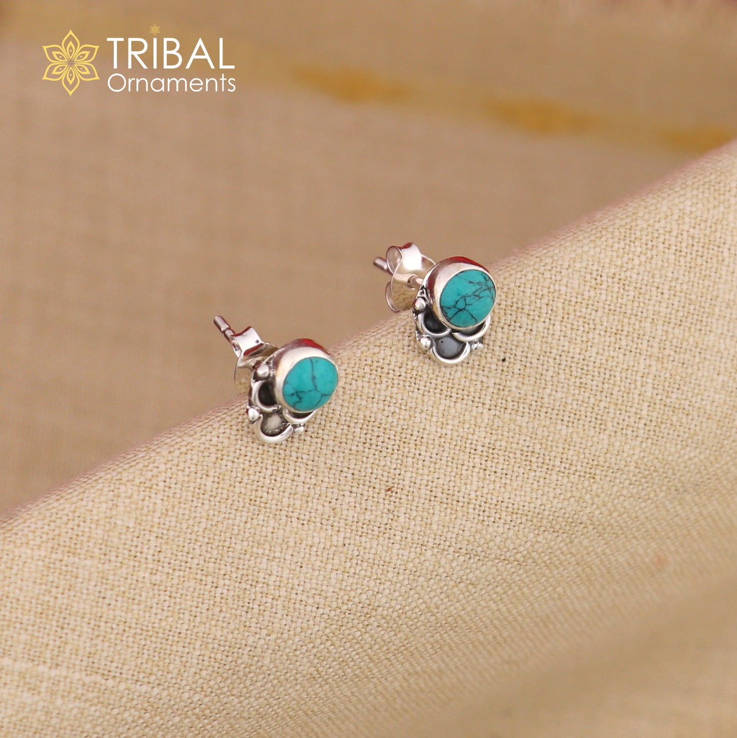 925 sterling silver gorgeous round shape blue turquoise stone stud earring best unisex jewelry s1399
