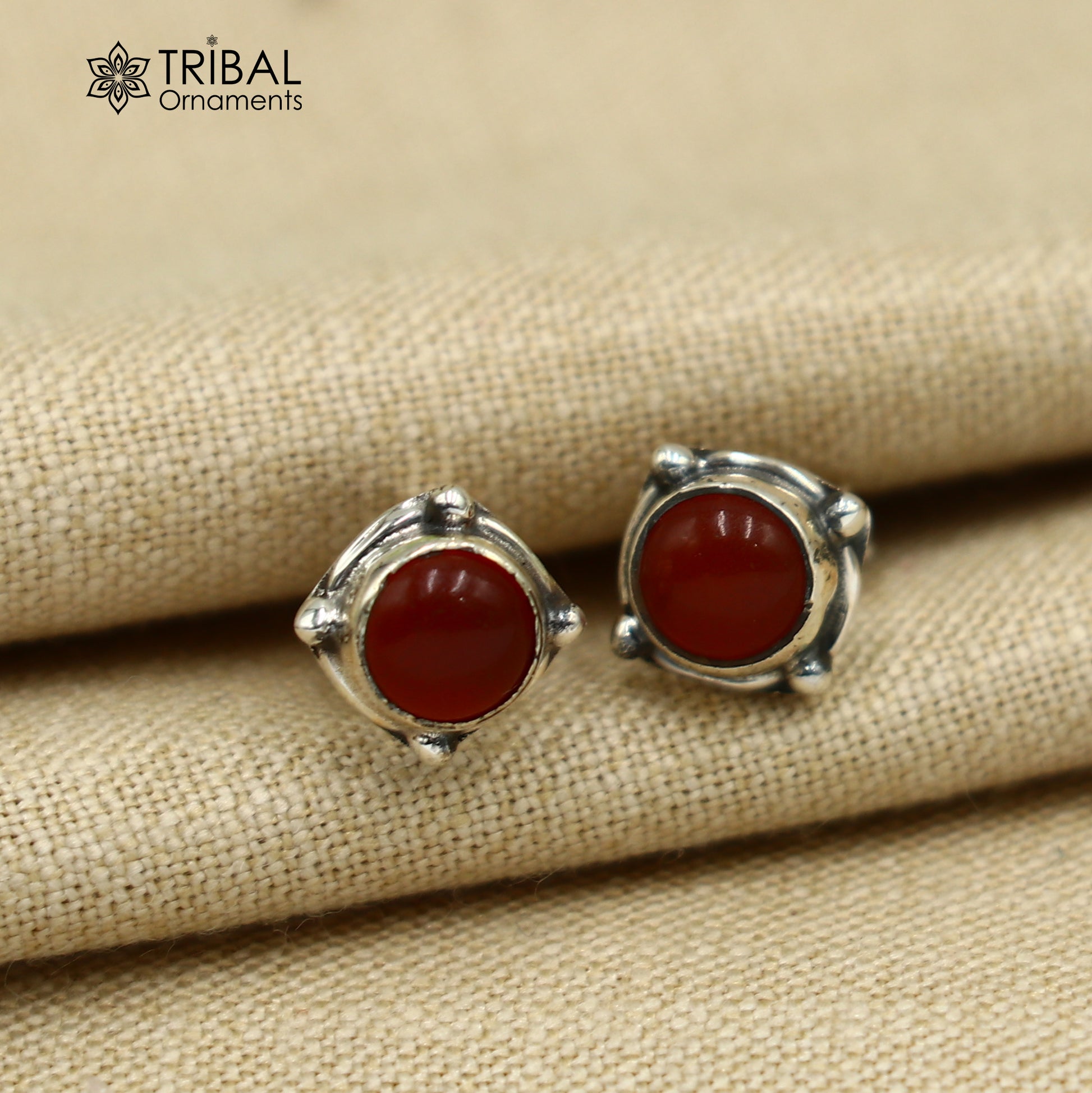 925 sterling silver gorgeous round shape red carnelian stone stud earring best unisex jewelry s1415