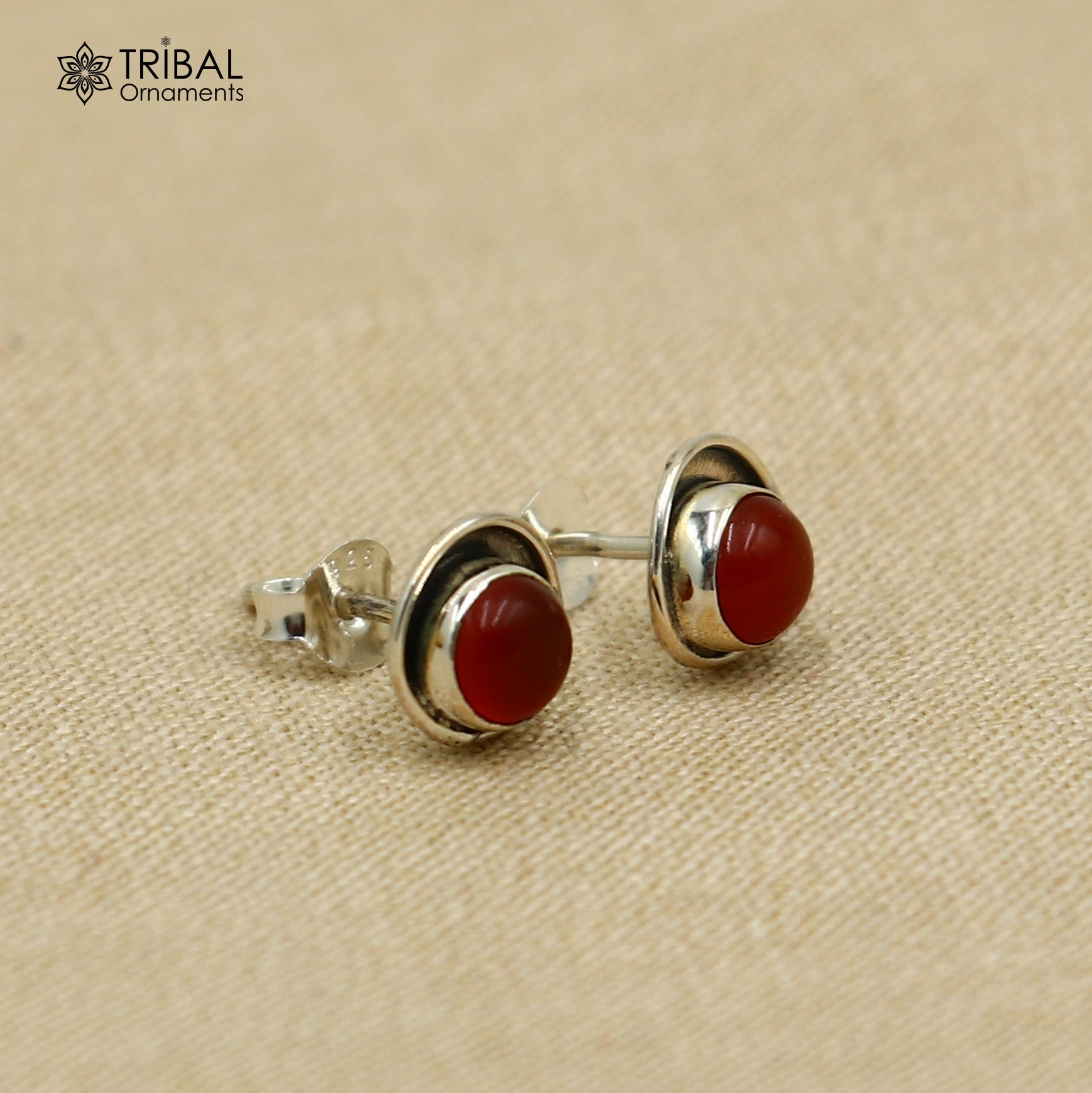 925 sterling silver gorgeous round shape gemstone coral stud earring best unisex jewelry s1408