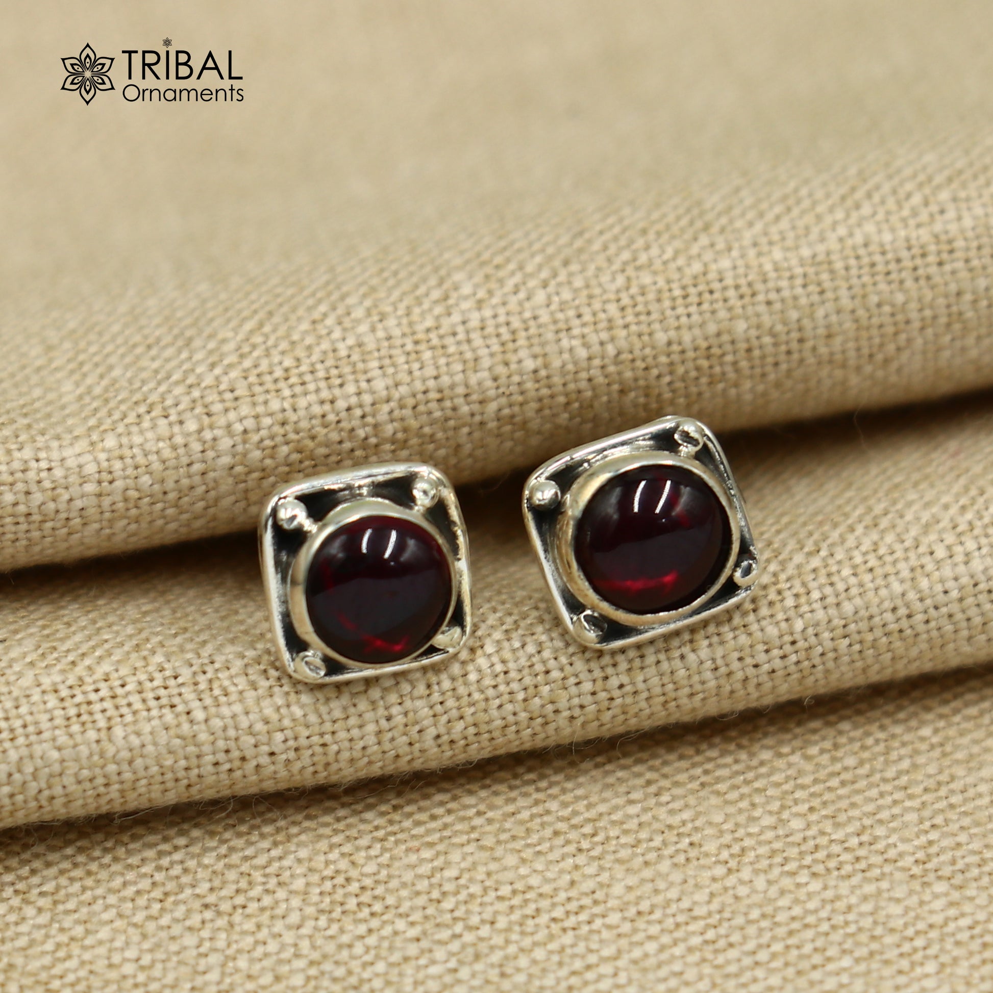 925 sterling silver gorgeous square shape red garnet stone stud earring best unisex jewelry s1422