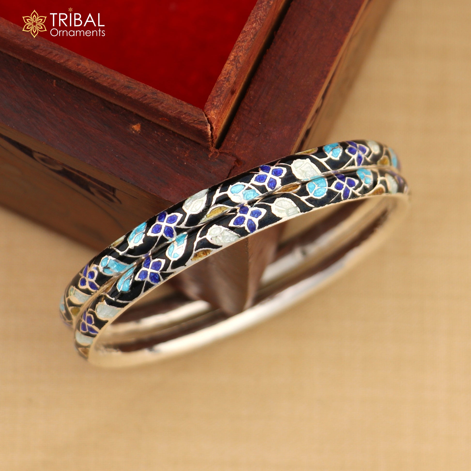 925 sterling silver handcrafted color enamel bangles bracelet, best brides jewelry vintage antique style wrist jewelry nba443