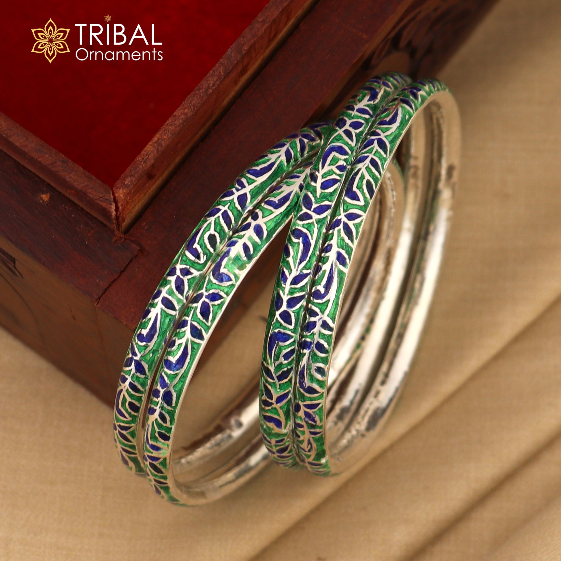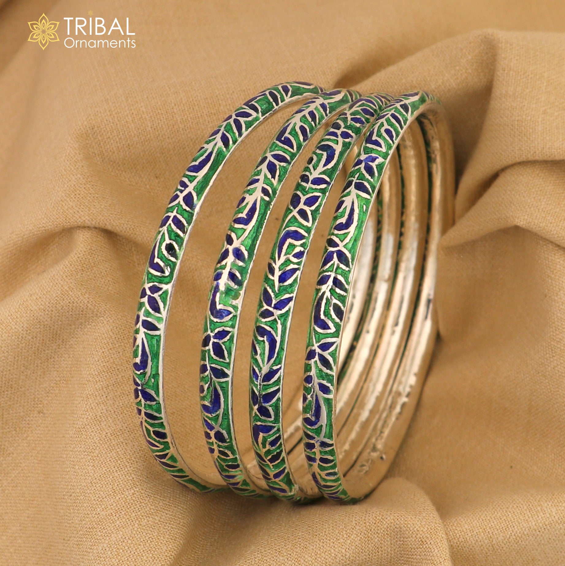 925 sterling silver handcrafted color enamel bangles bracelet, best brides jewelry vintage antique style wrist jewelry nba447