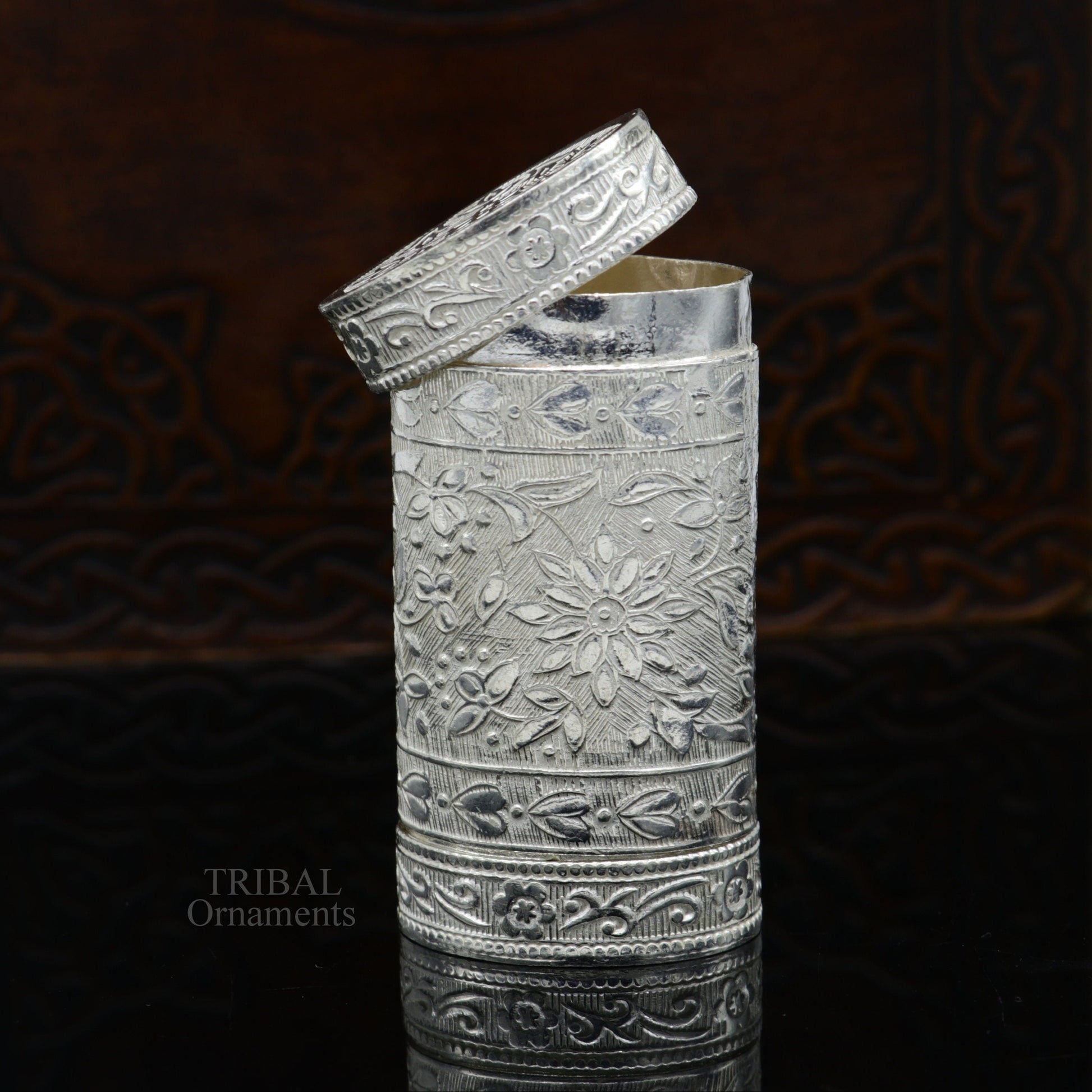 925 sterling silver handcrafted floral design 2 in1 trinket box, tobacco box, tobacco and chuna box, best gifting royal article stb361