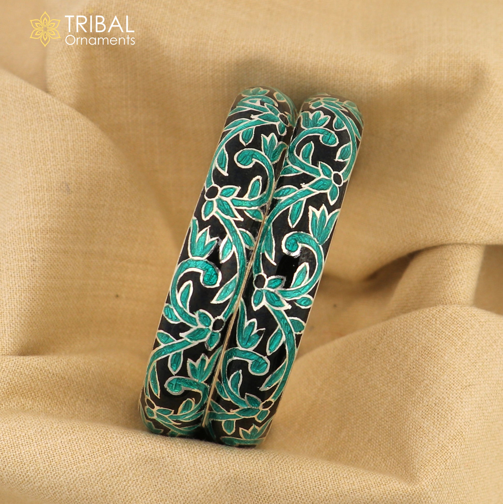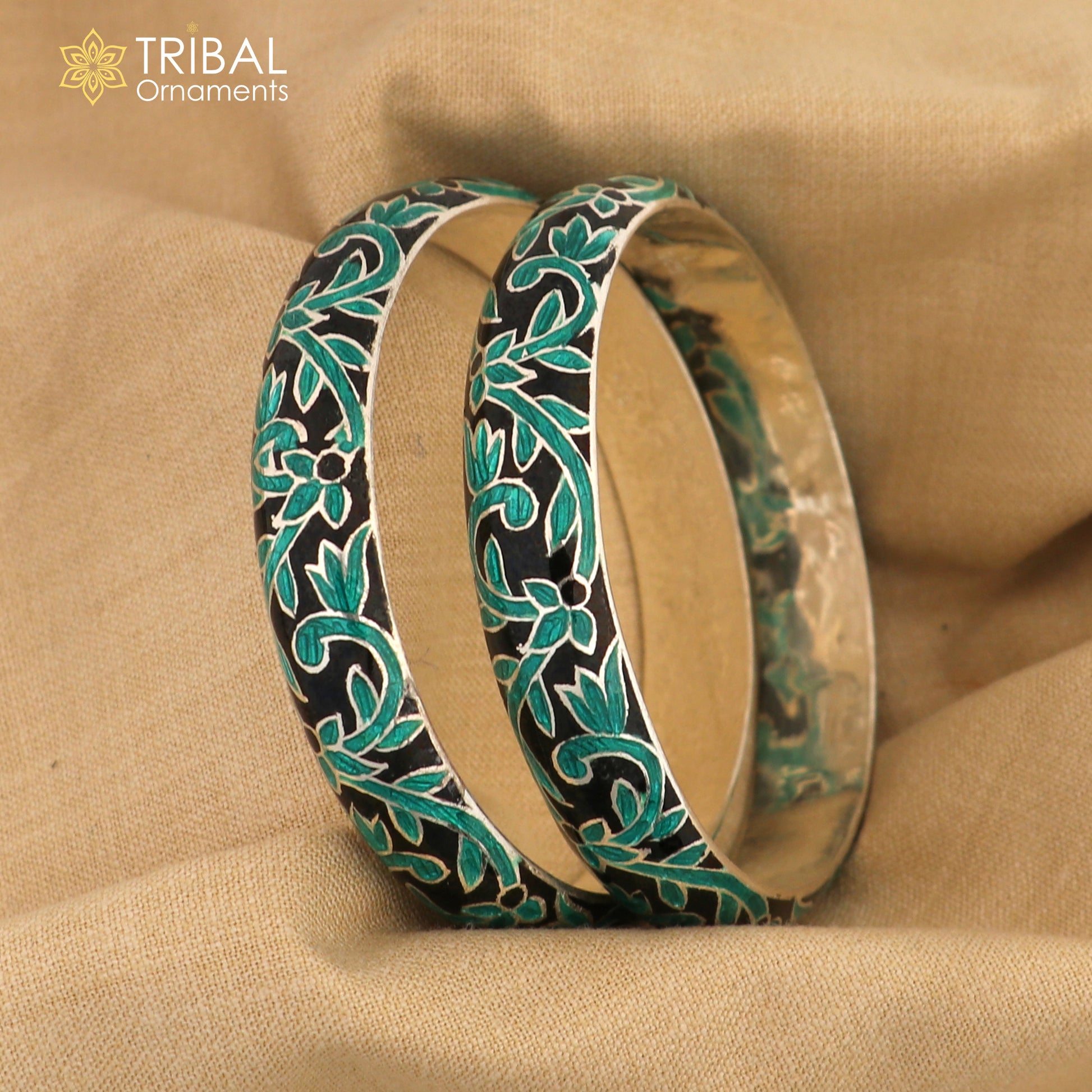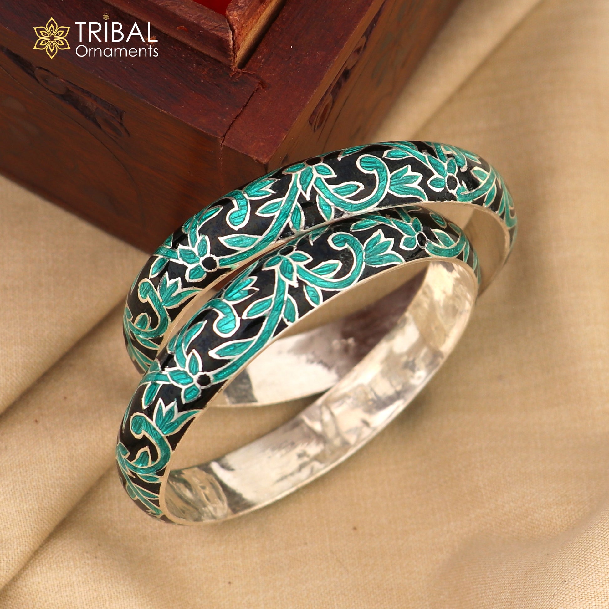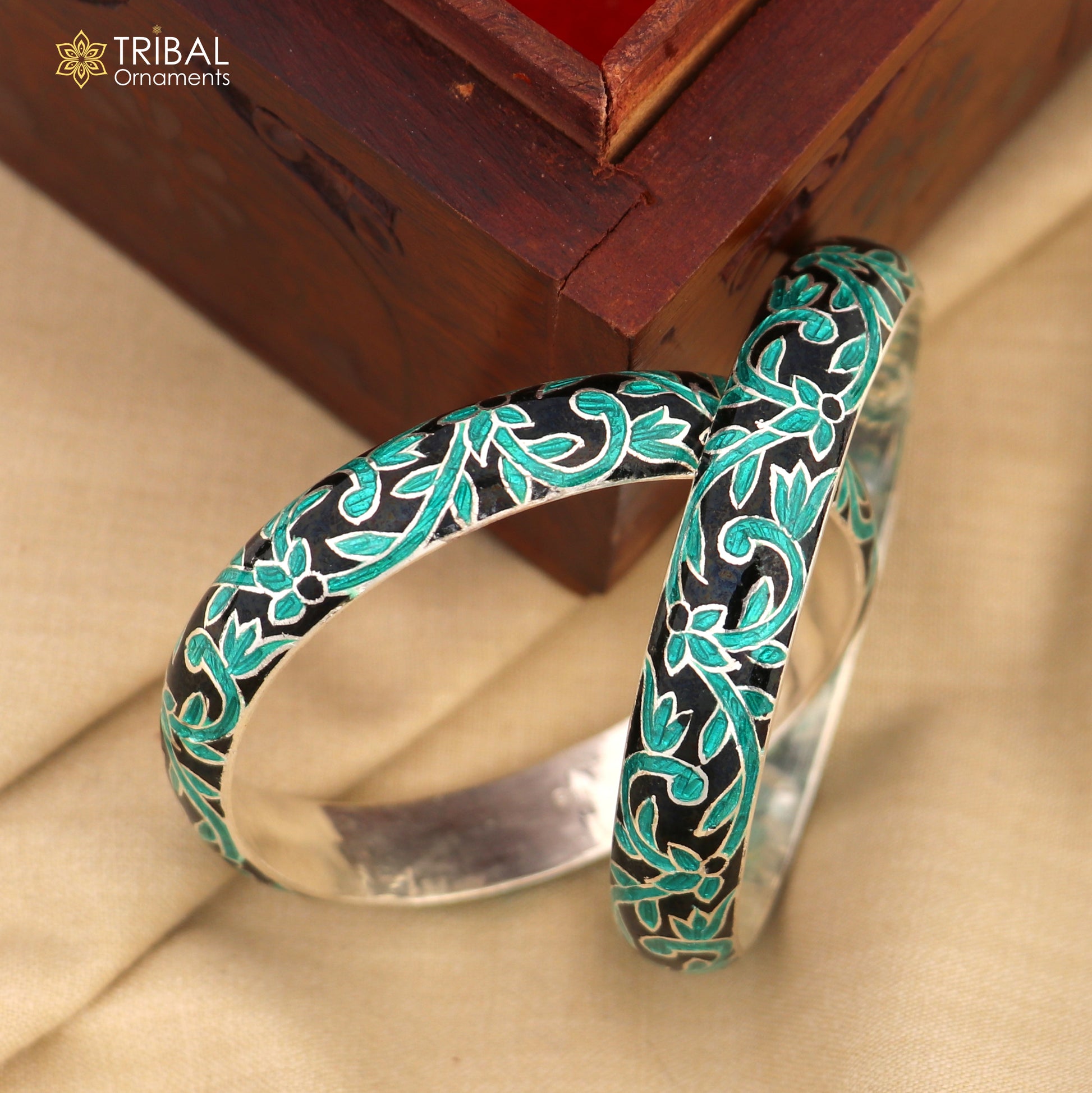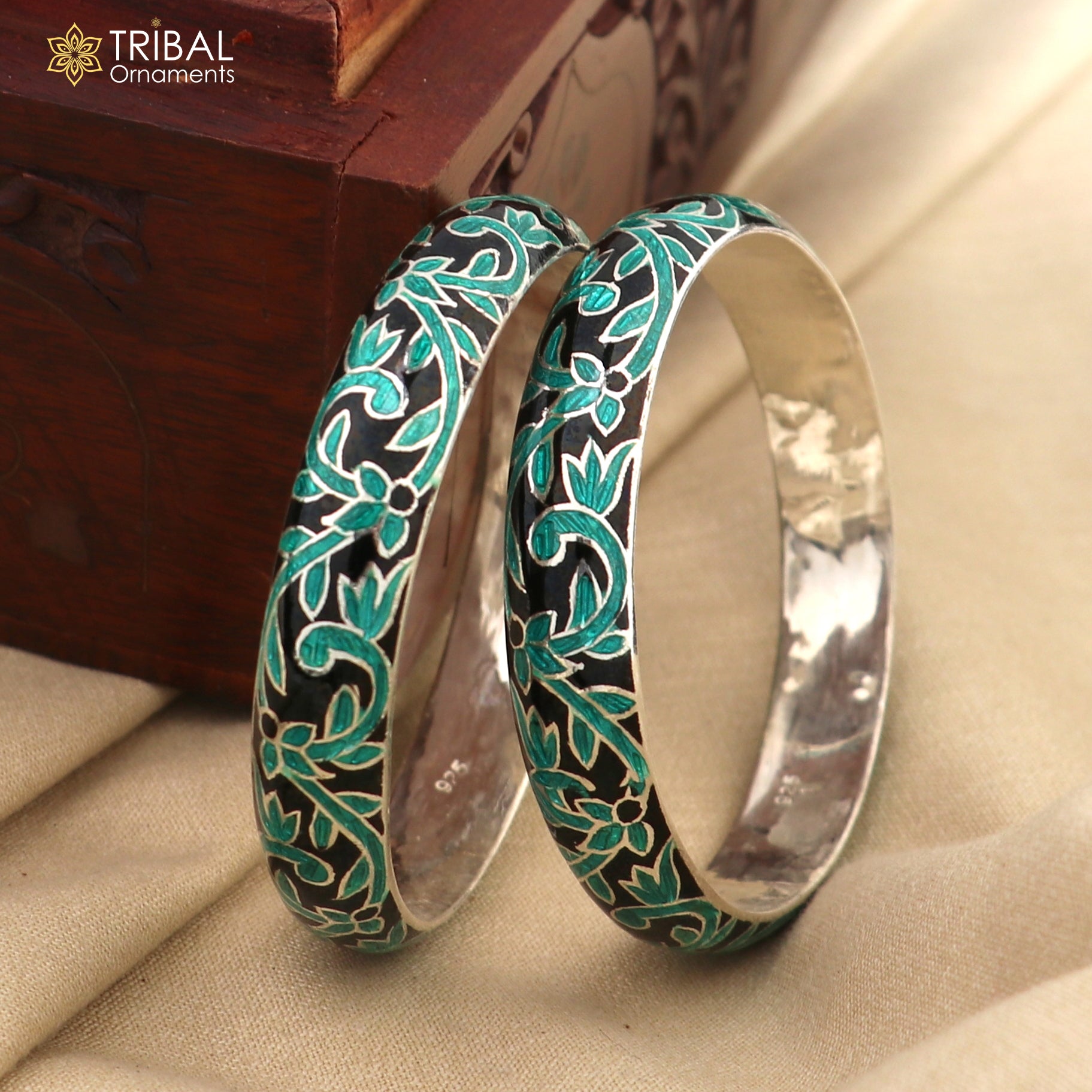 925 sterling silver handcrafted multicolor enamel flower design bangles bracelet nba454