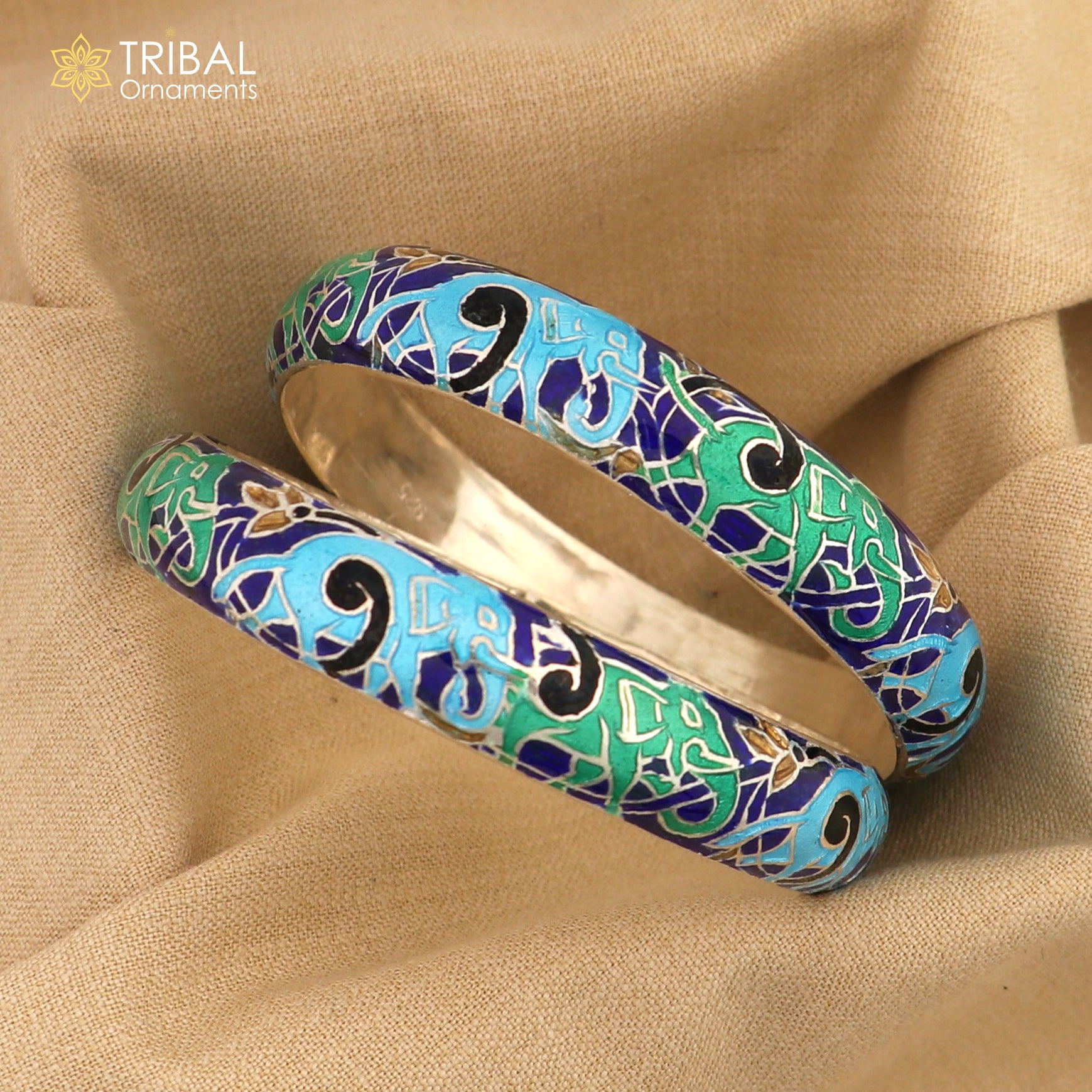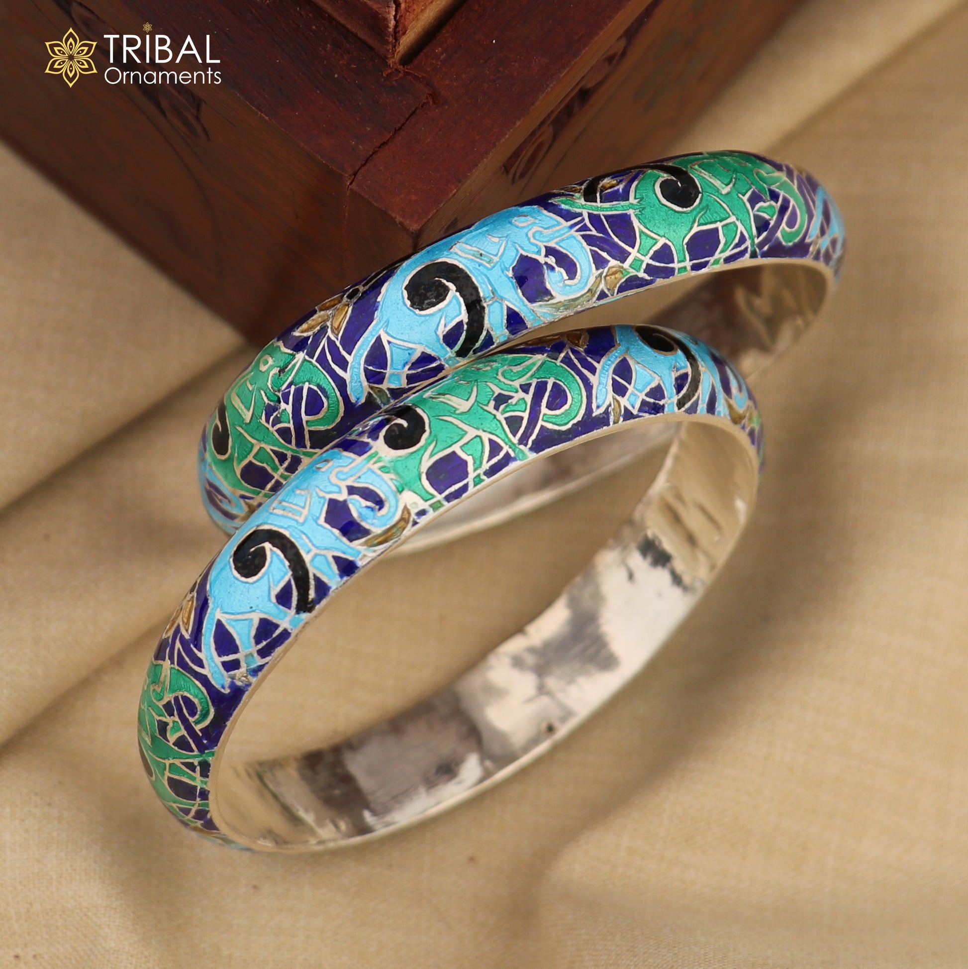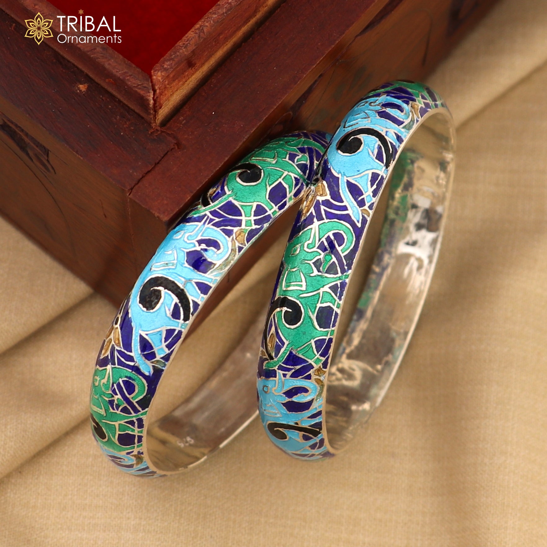 925 sterling silver handcrafted multicolor enamel flower design bangles bracelet nba456