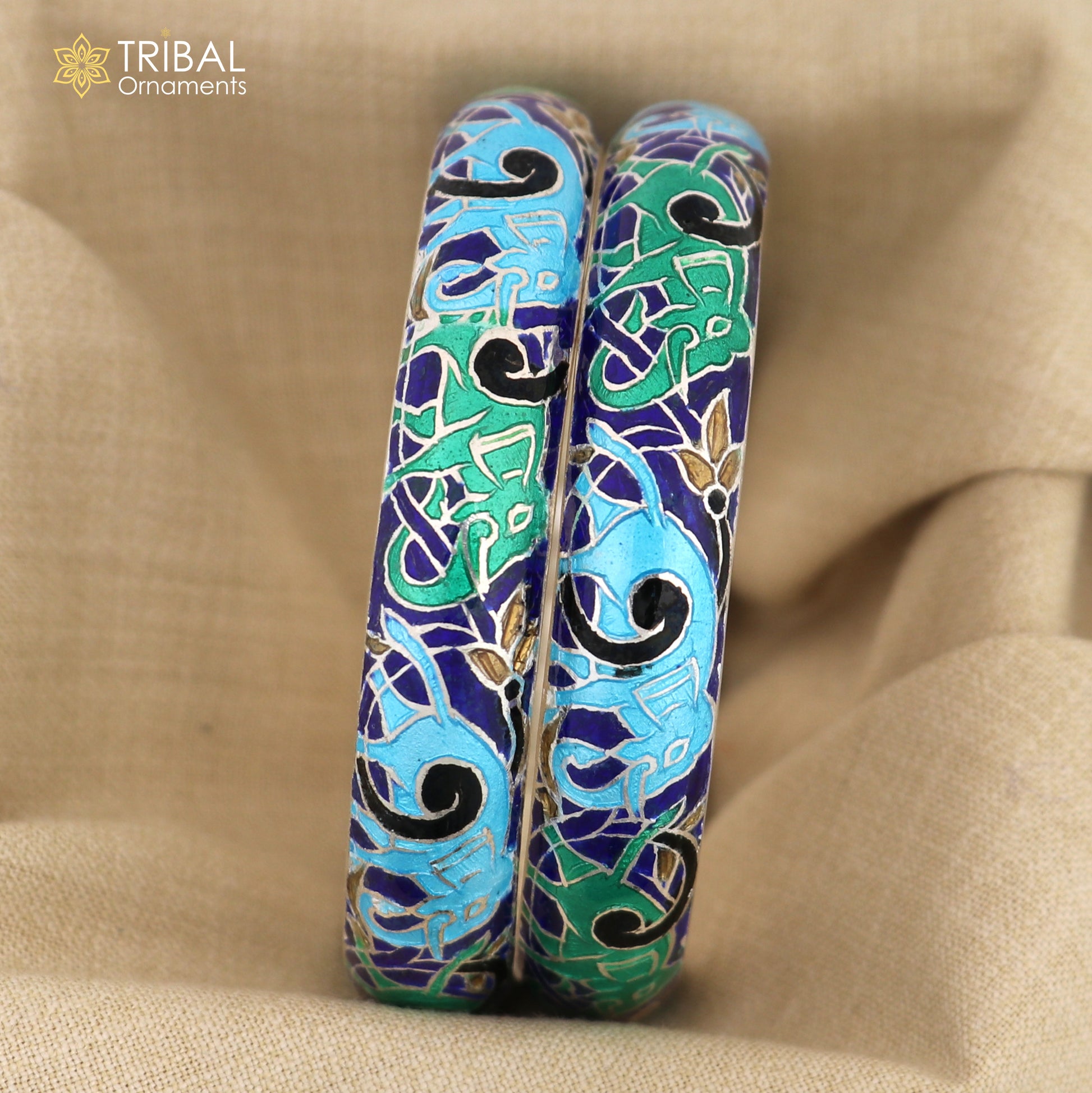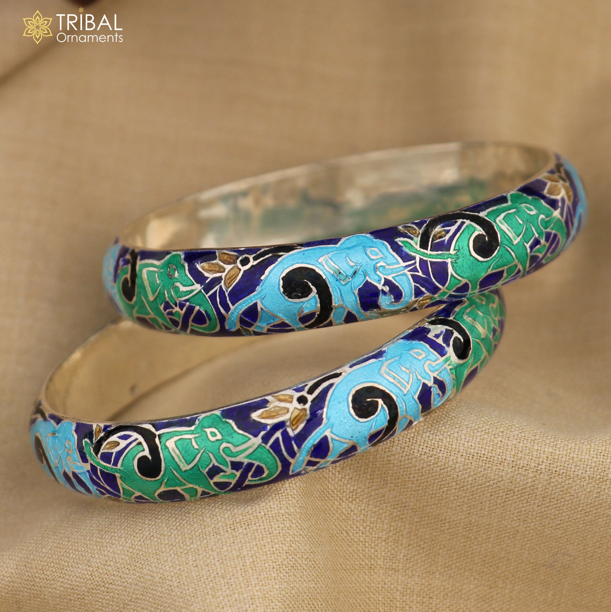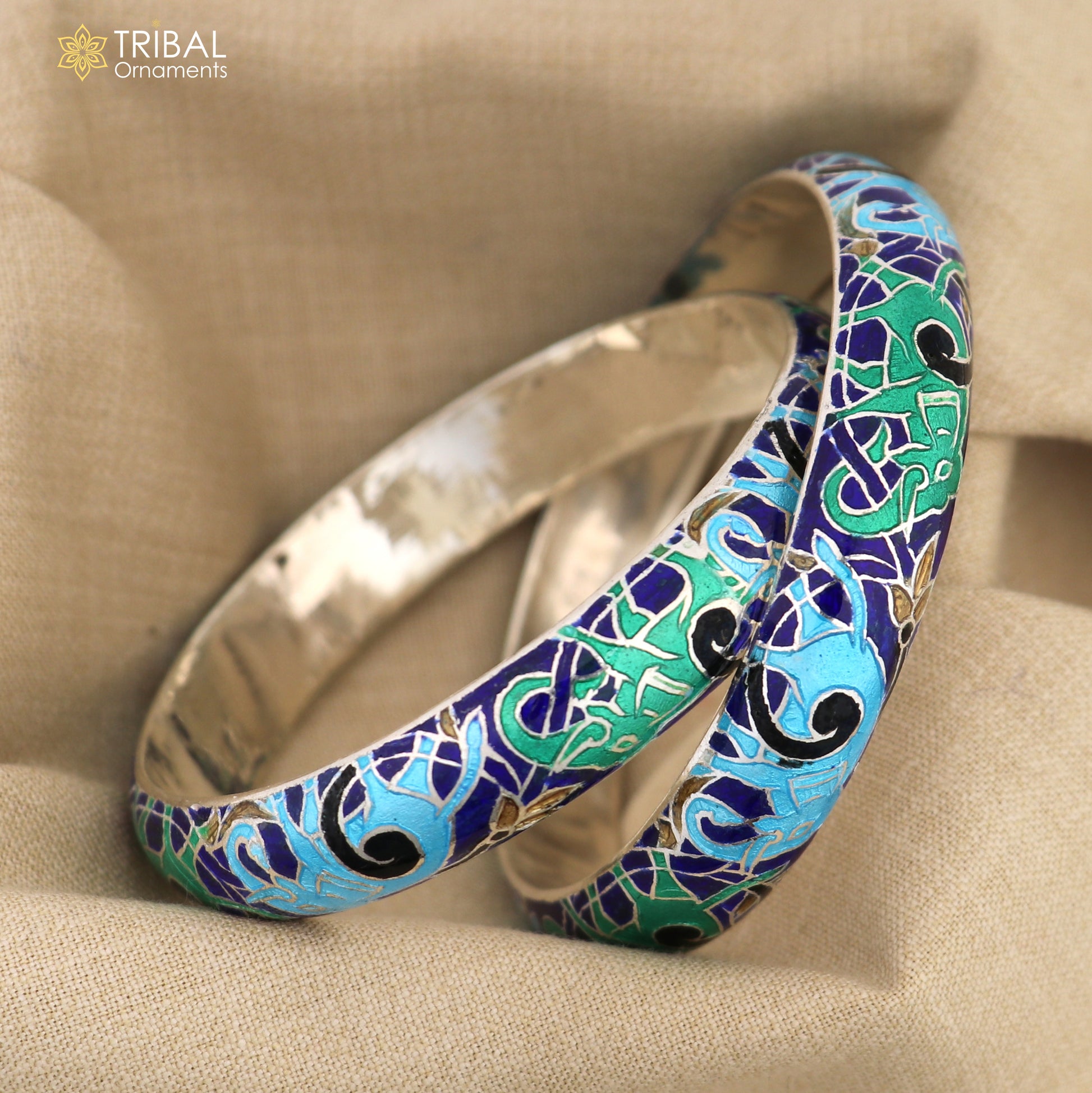 925 sterling silver handcrafted multicolor enamel flower design bangles bracelet nba456