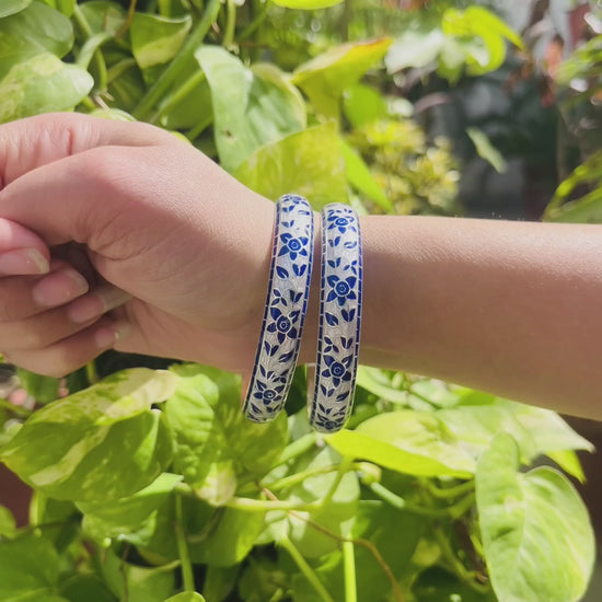 925 sterling silver handcrafted multicolor enamel flower design bangles bracelet nba452