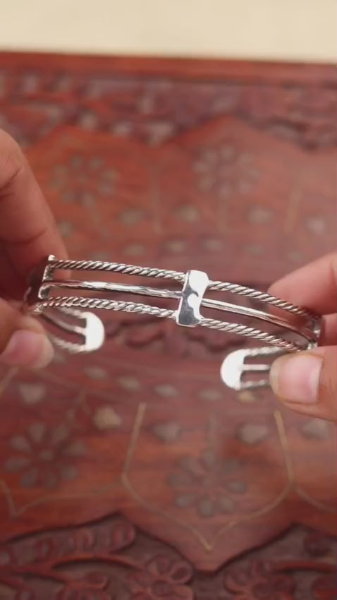 925 sterling silver handcrafted vintage style amazing cuff bangle kada bracelet, best gift for men's and girl's, adjustable kada cuff117