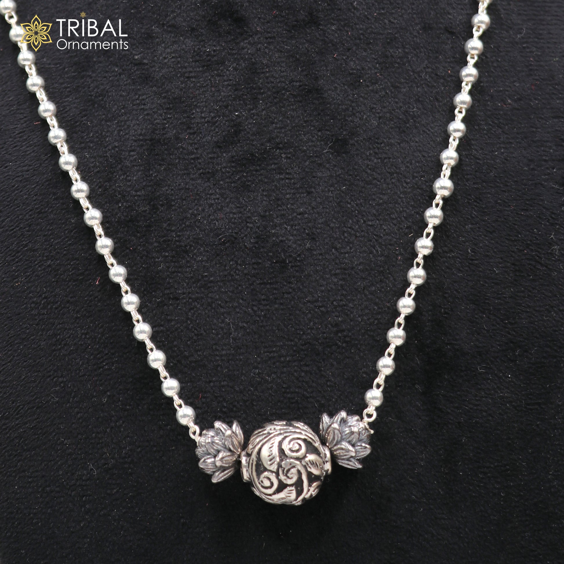 925 sterling silver handmade 4mm beads long necklace, unique ball design pendant traditional cultural functional necklace jewelry SET535