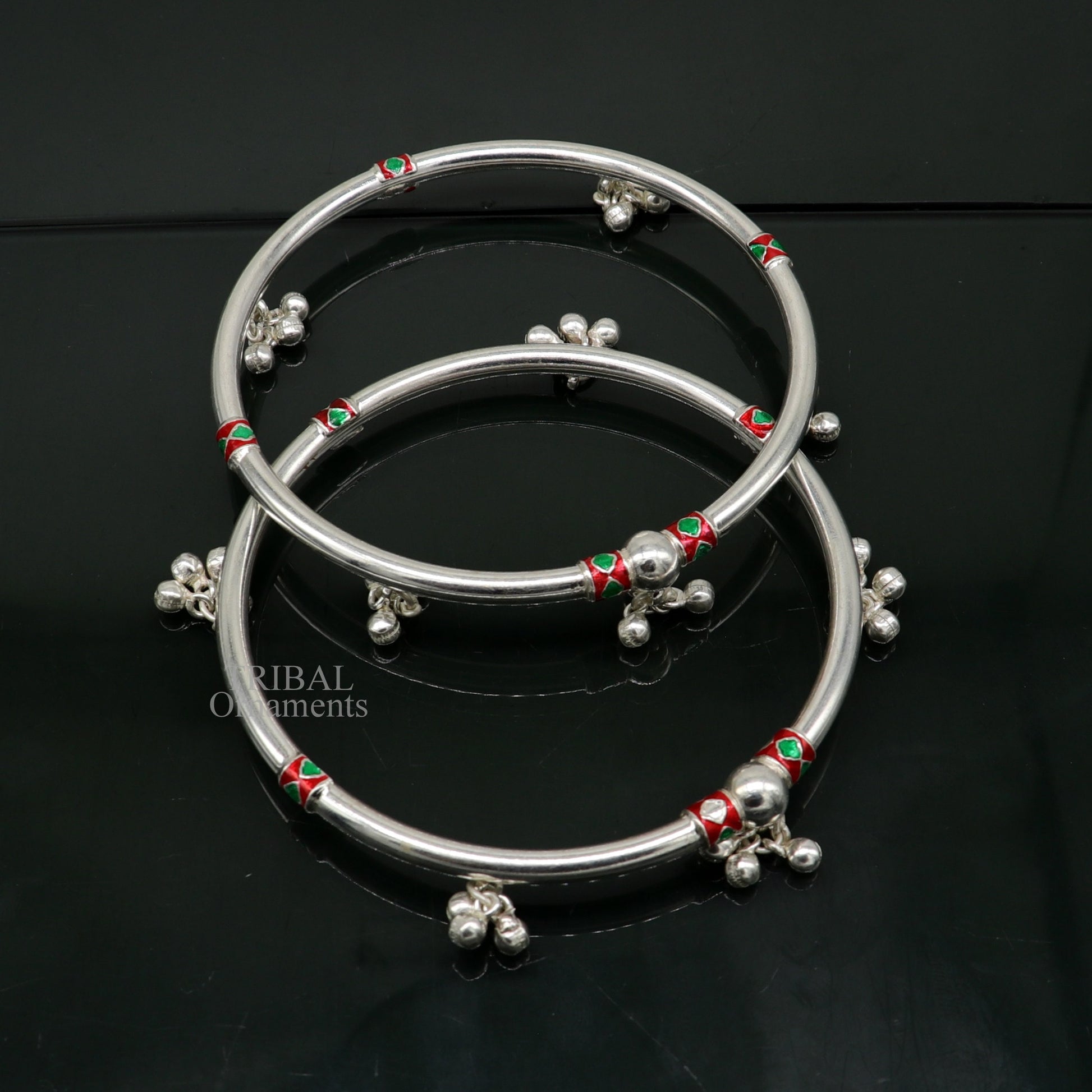 925 sterling silver handmade amazing foot ankle plain bracelet kada with hanging noisy bells, belly dance jewelry from Rajasthan nsfk59
