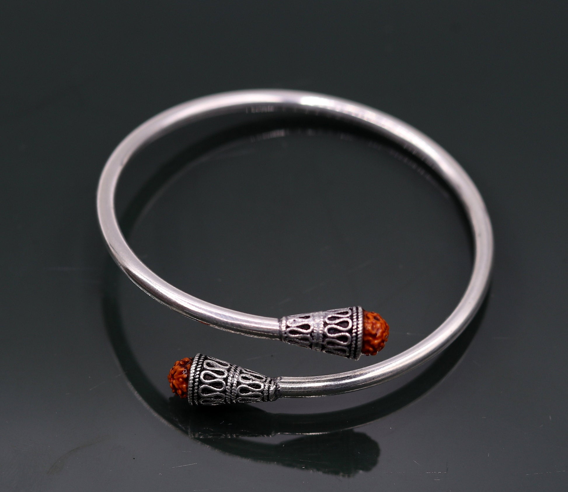 925 sterling silver handmade amazing Rudraksha beads flexible bangle bracelet kada unisex adjustable jewelry from india nsk150