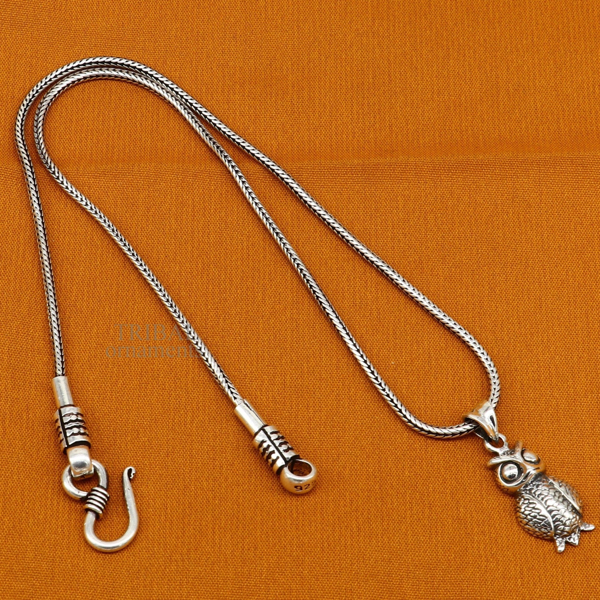 925 sterling silver handmade amazing small owl design pendant, amazing stylish unisex good luck pendant tribal jewelry ssp1589