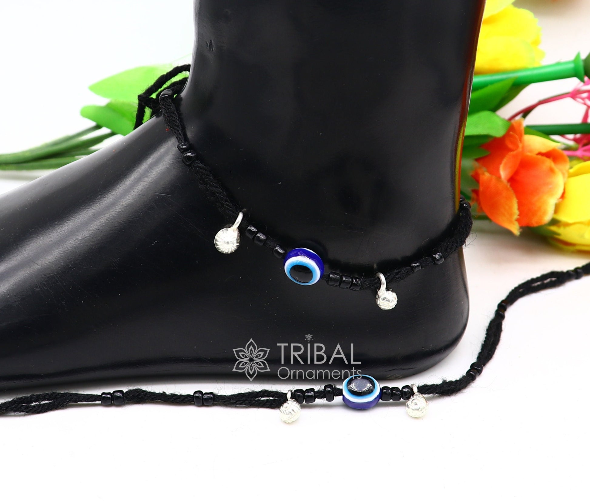 925 sterling silver handmade beads with evil eyes ankle bracelet, customized Thread anklets foot bracelet, Beach Anklet nank578