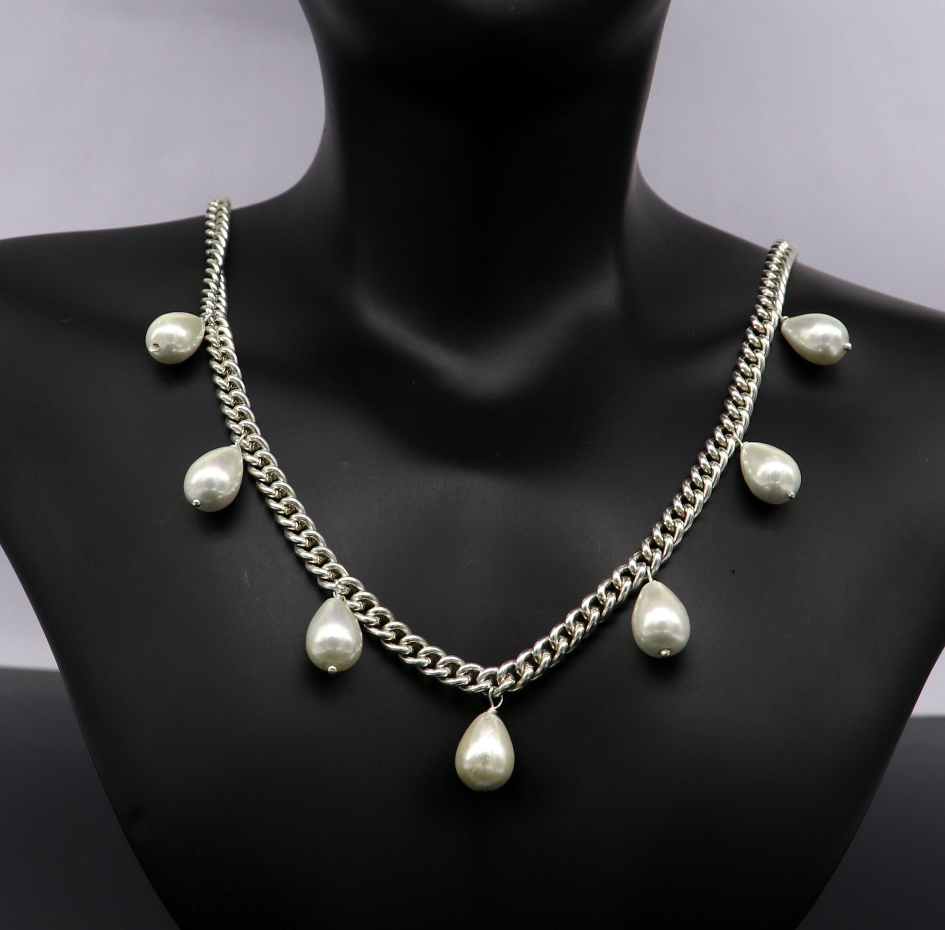 925 sterling silver handmade charm curb cuban link chain necklace, excellent hanging pearl necklace, stylish bridesmaid gift jewelry set146