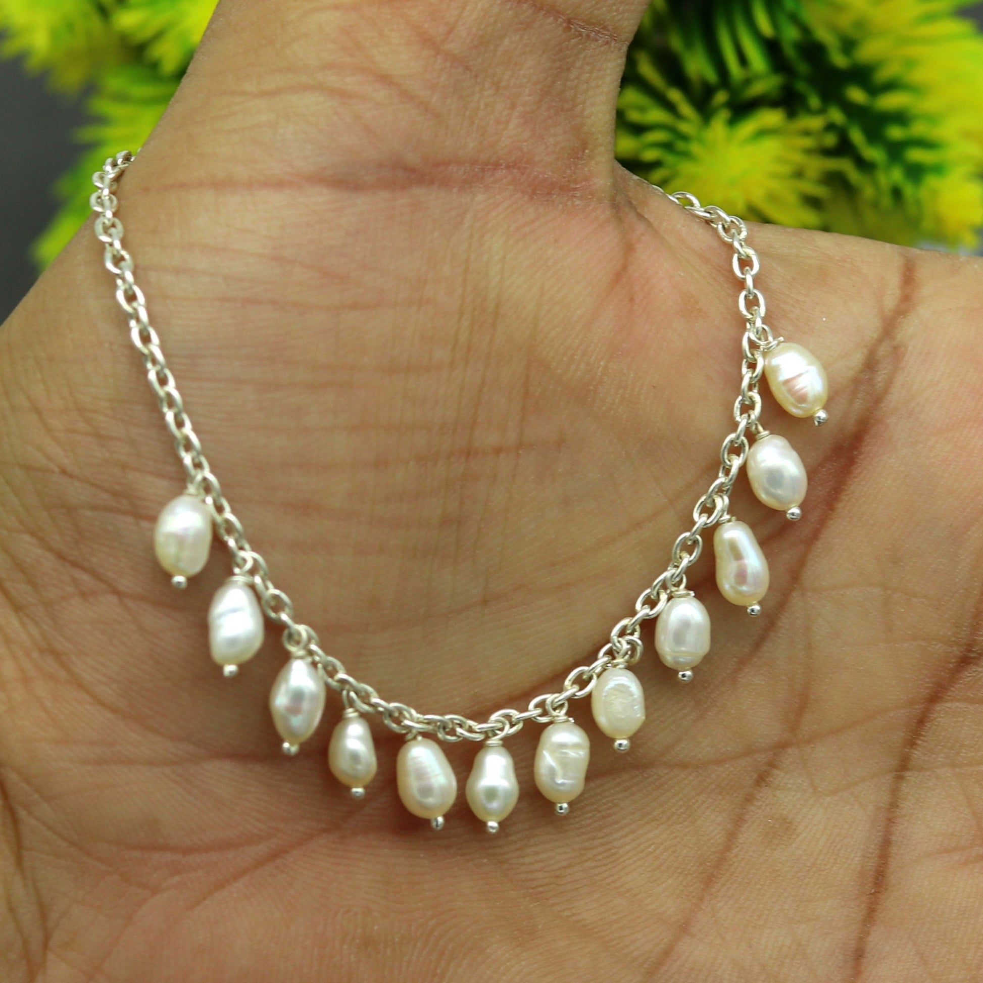 925 sterling silver handmade customized charm bracelet, amazing stylish pearl bracelet unisex gifting jewelry belly dance jewelry nsbr192