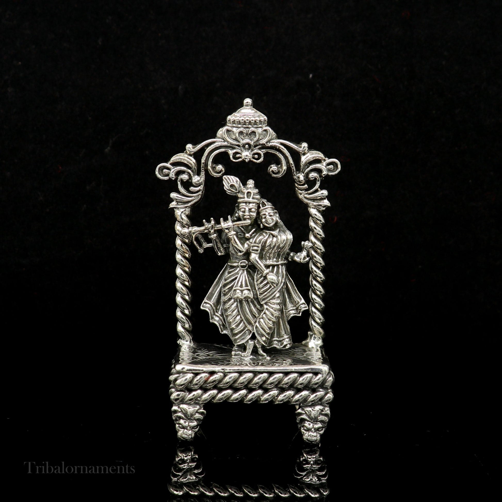 925 sterling silver handmade Divine Hindu god Krishna with Radha blessing Statue, Stunning Radha kishan figurine puja article art168