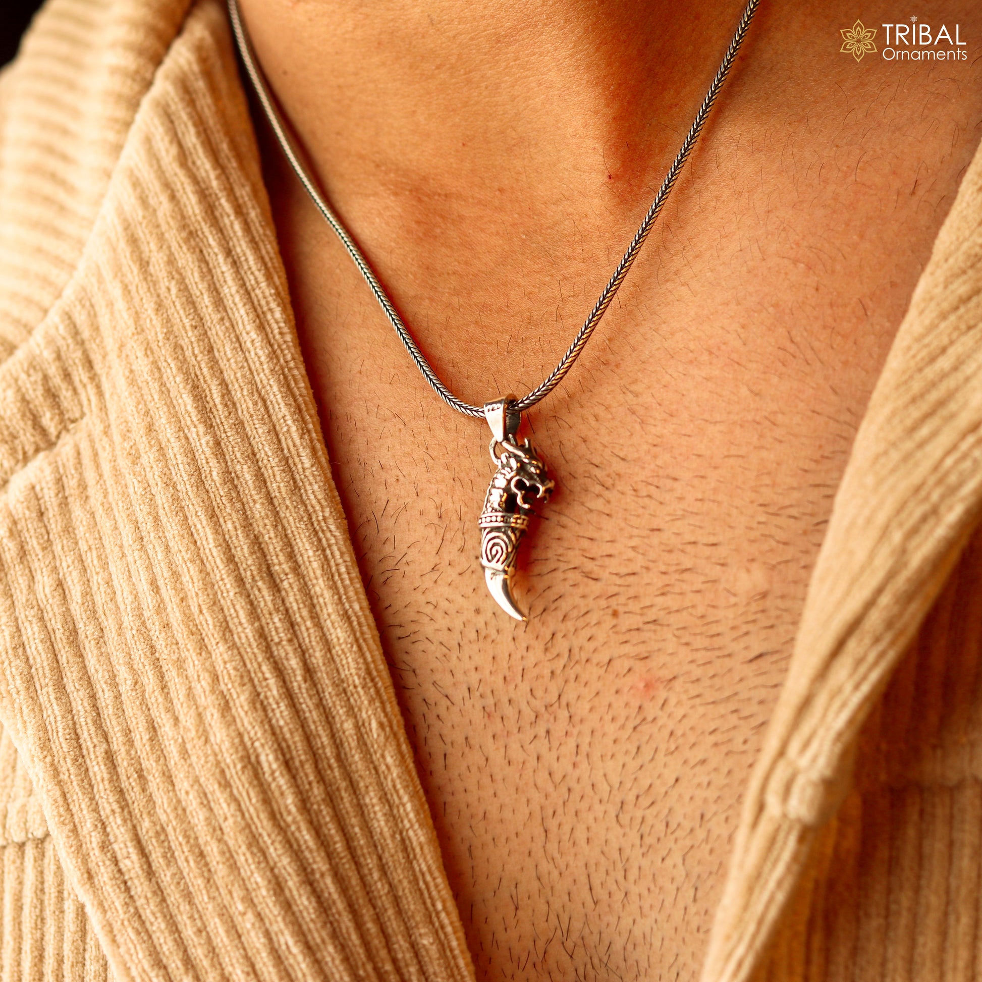 925 sterling silver handmade dragon tooth pendant symbol of mythical power, wisdom, and resilience nsp654