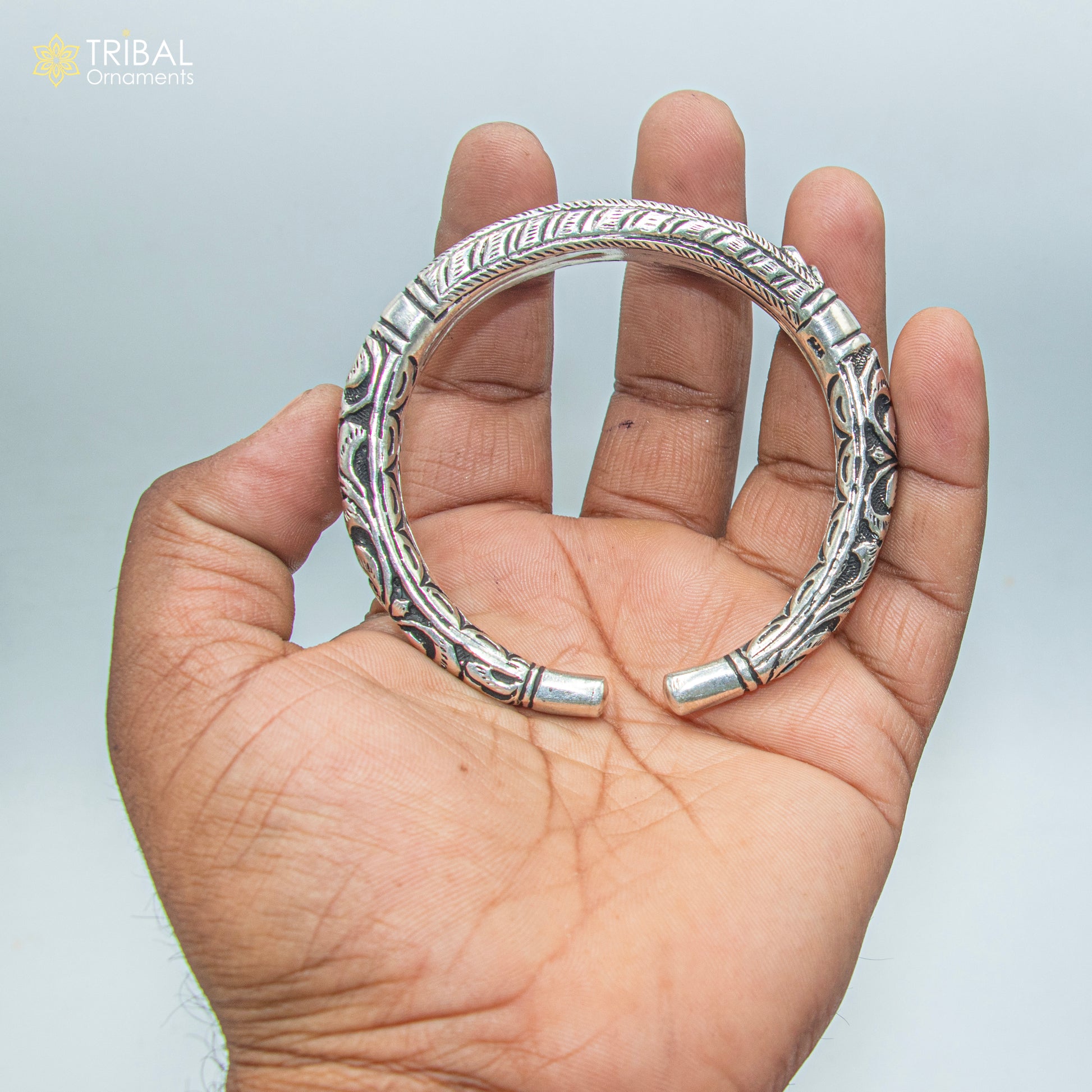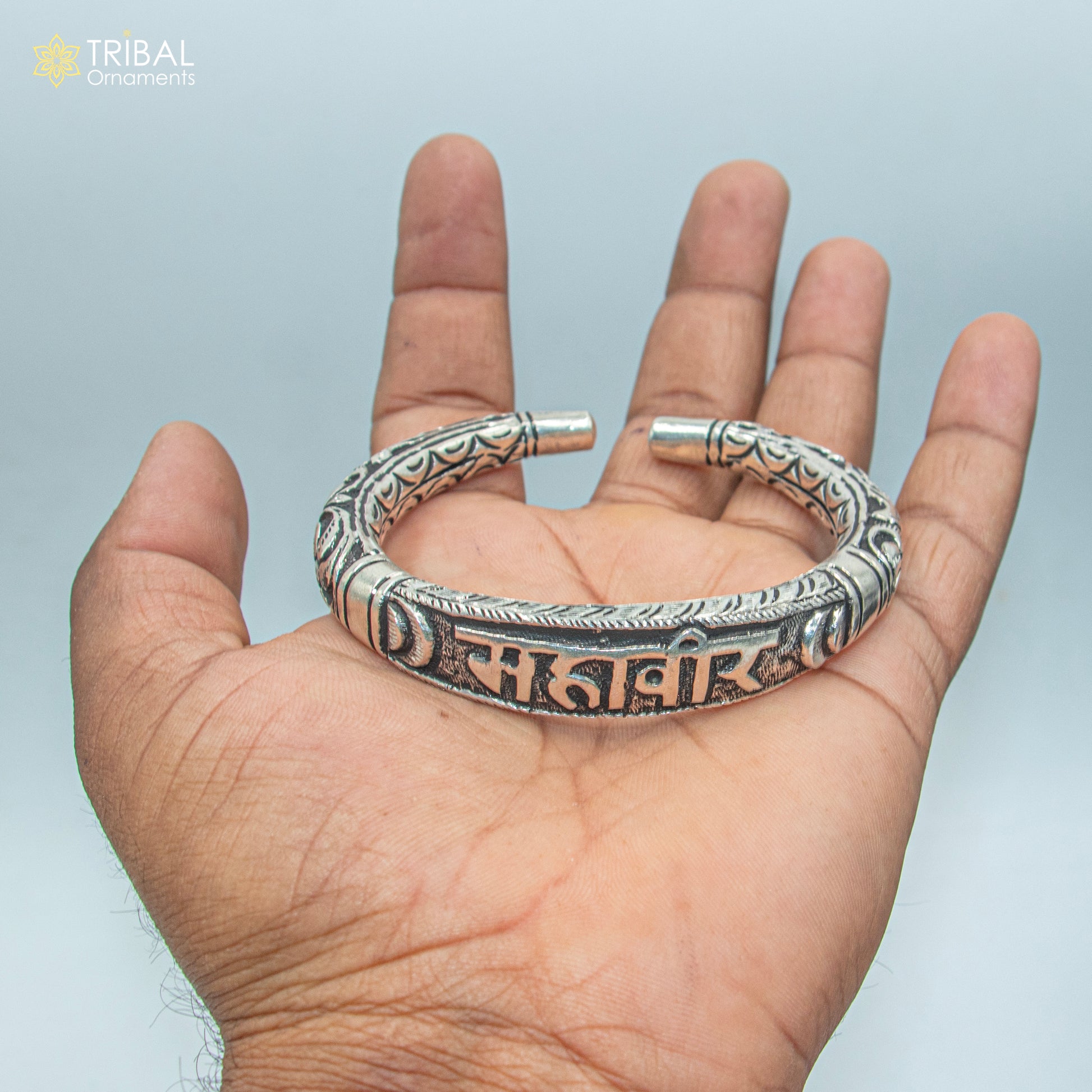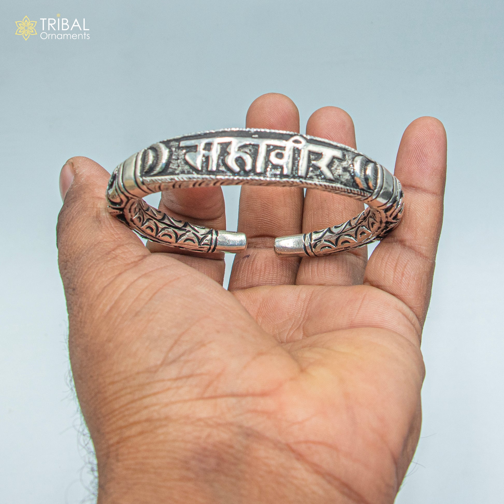 925 sterling silver Mahaveer chitai work bangle bracelet kada nsk903