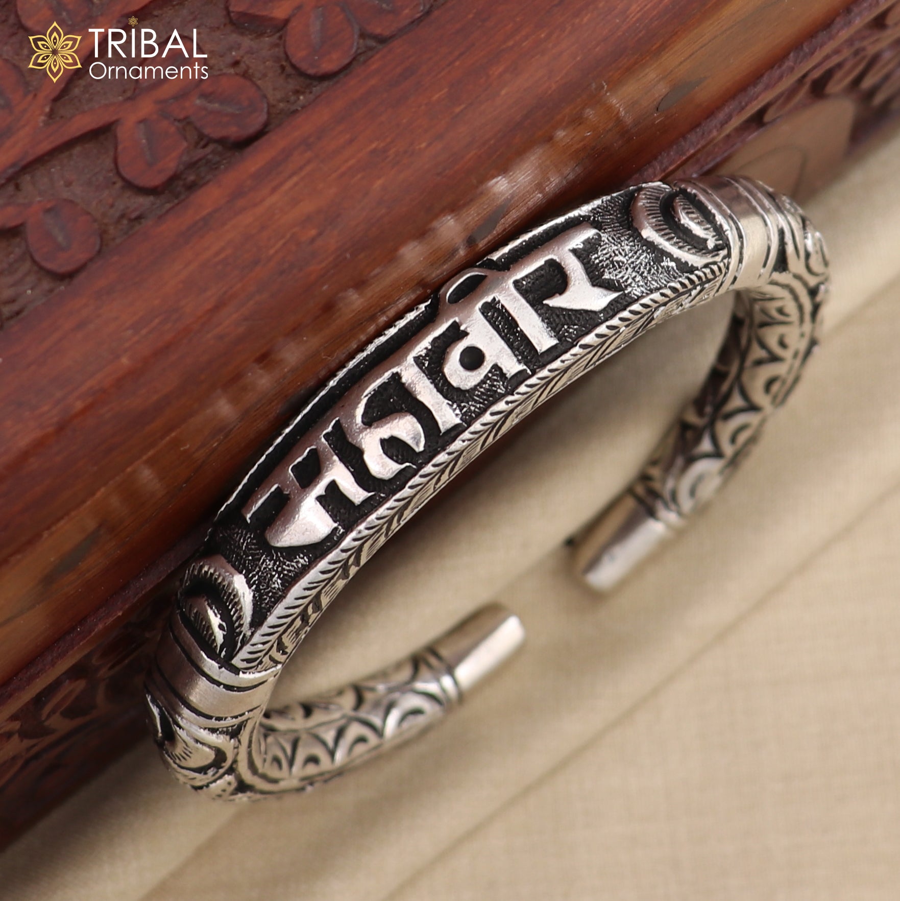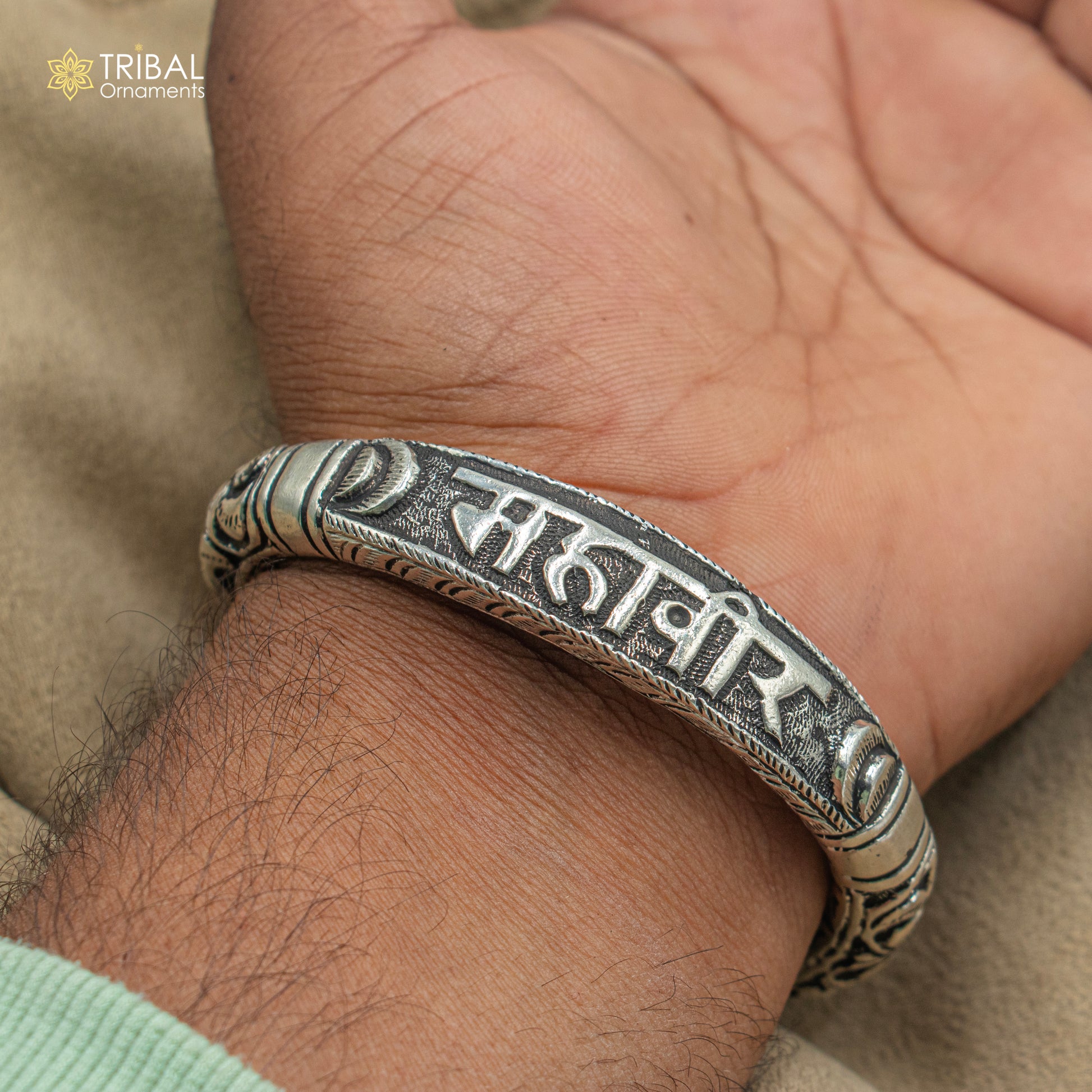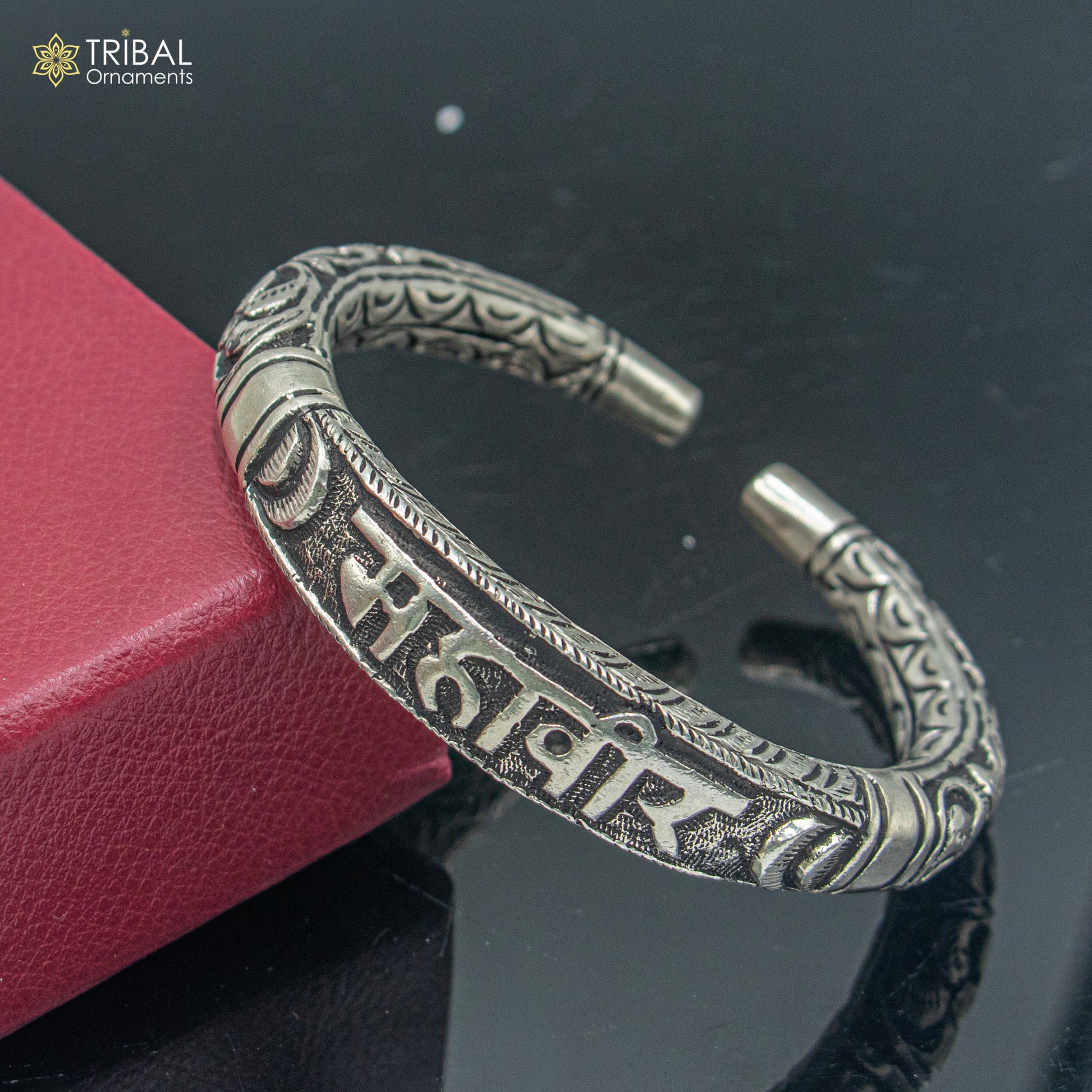 925 sterling silver Mahaveer chitai work bangle bracelet kada nsk903
