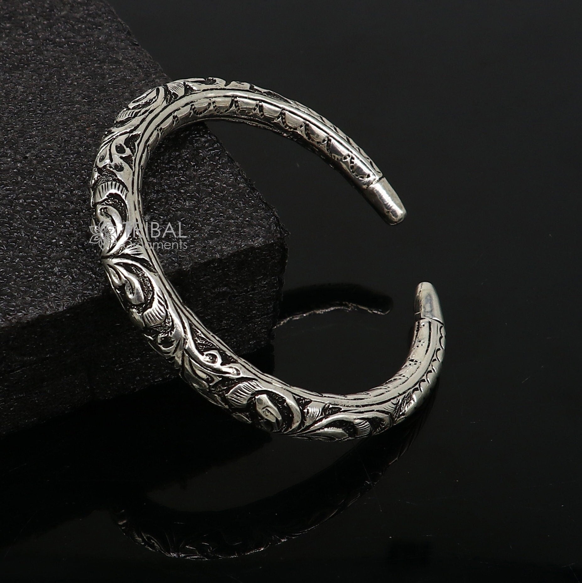 925 Sterling silver handmade fabulous chitai work customized bangle bracelet kada with pearl unisex personalized tribal jewelry nsk718