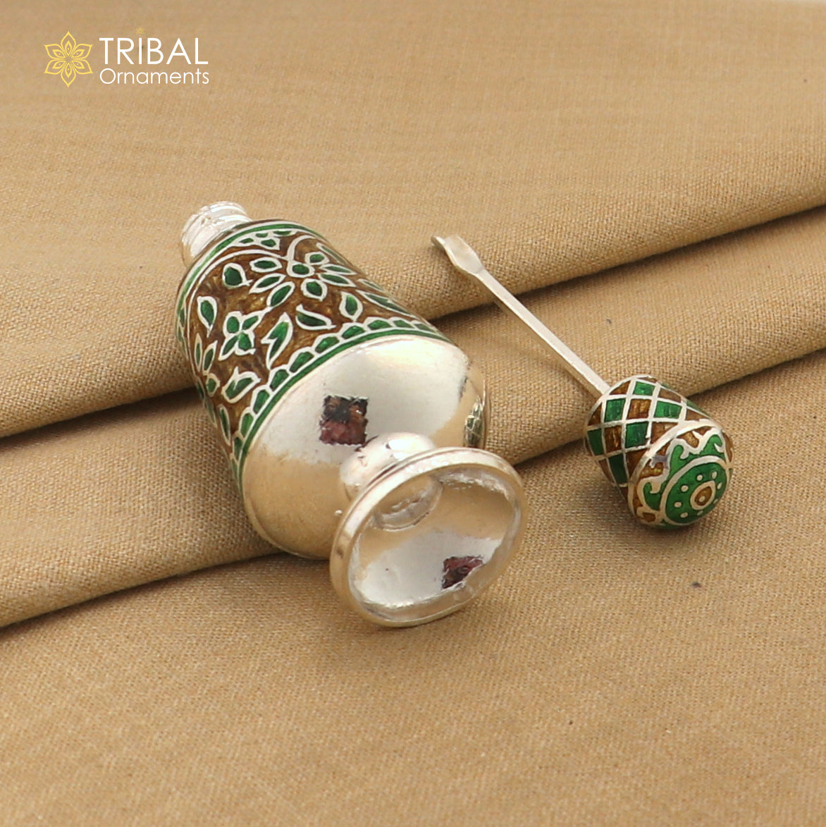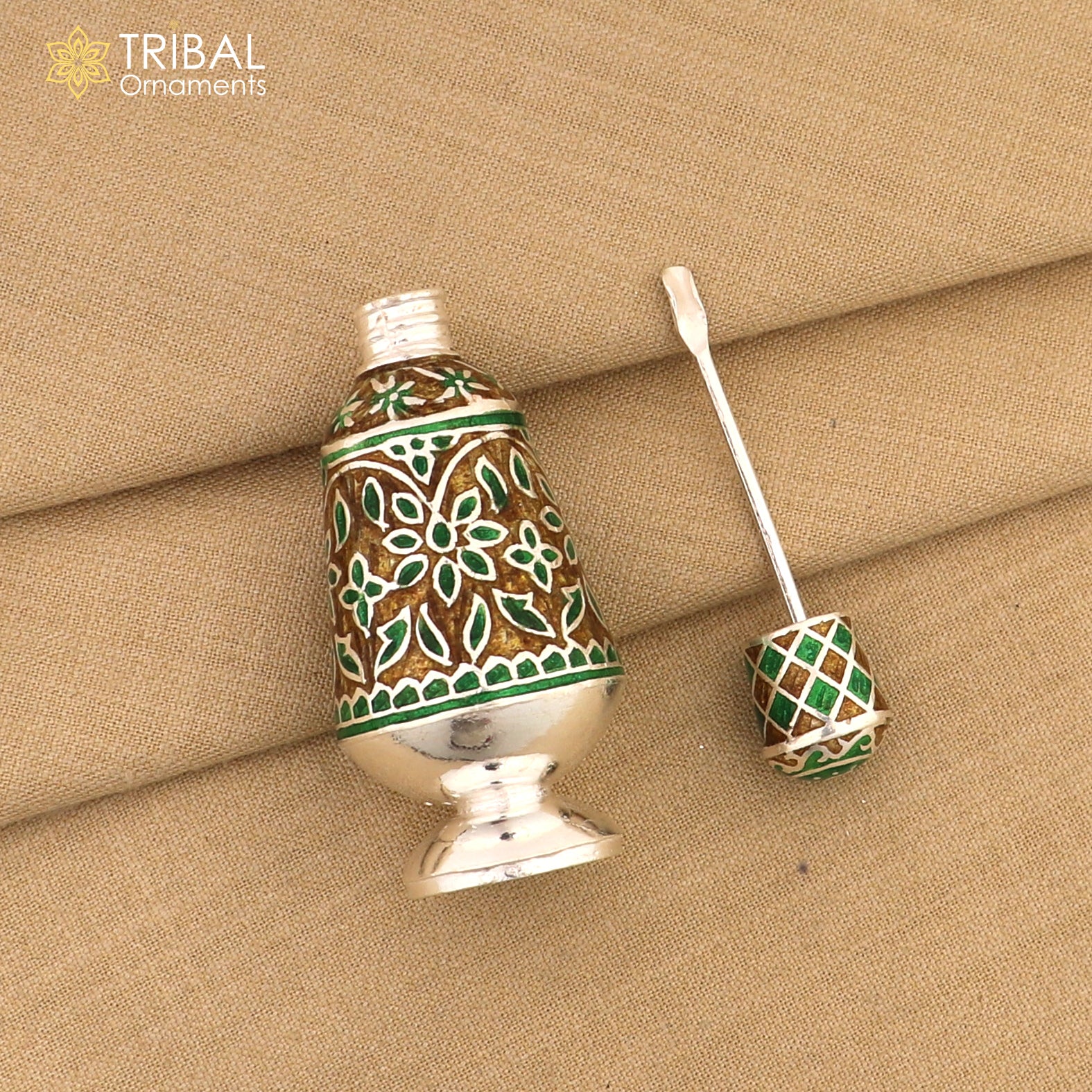 925 Sterling silver handmade fabulous meenakari trinket box, container box, casket box, sindoor box, enamel work customized box stb862