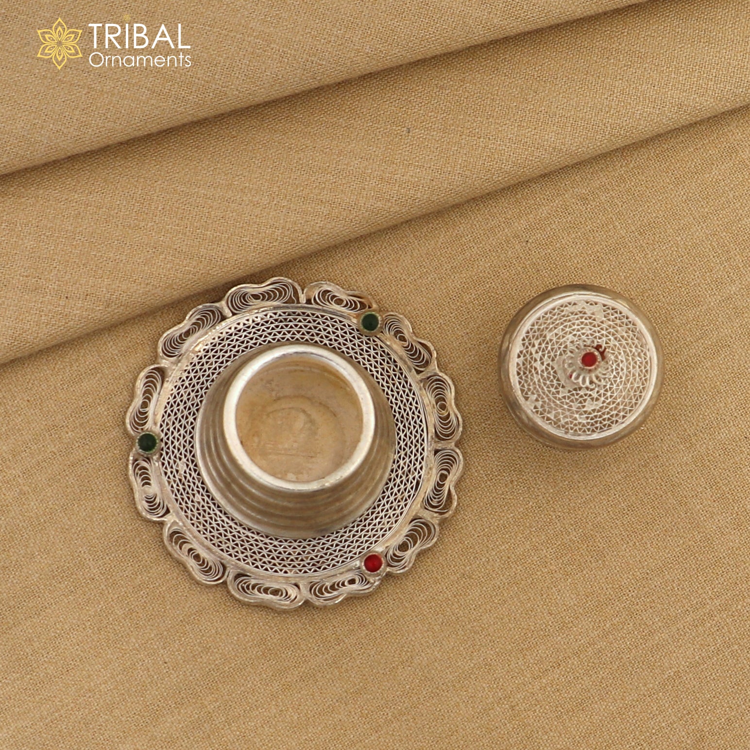925 Sterling silver handmade fabulous meenakari trinket box, container box, casket box, sindoor box, enamel work customized box stb864