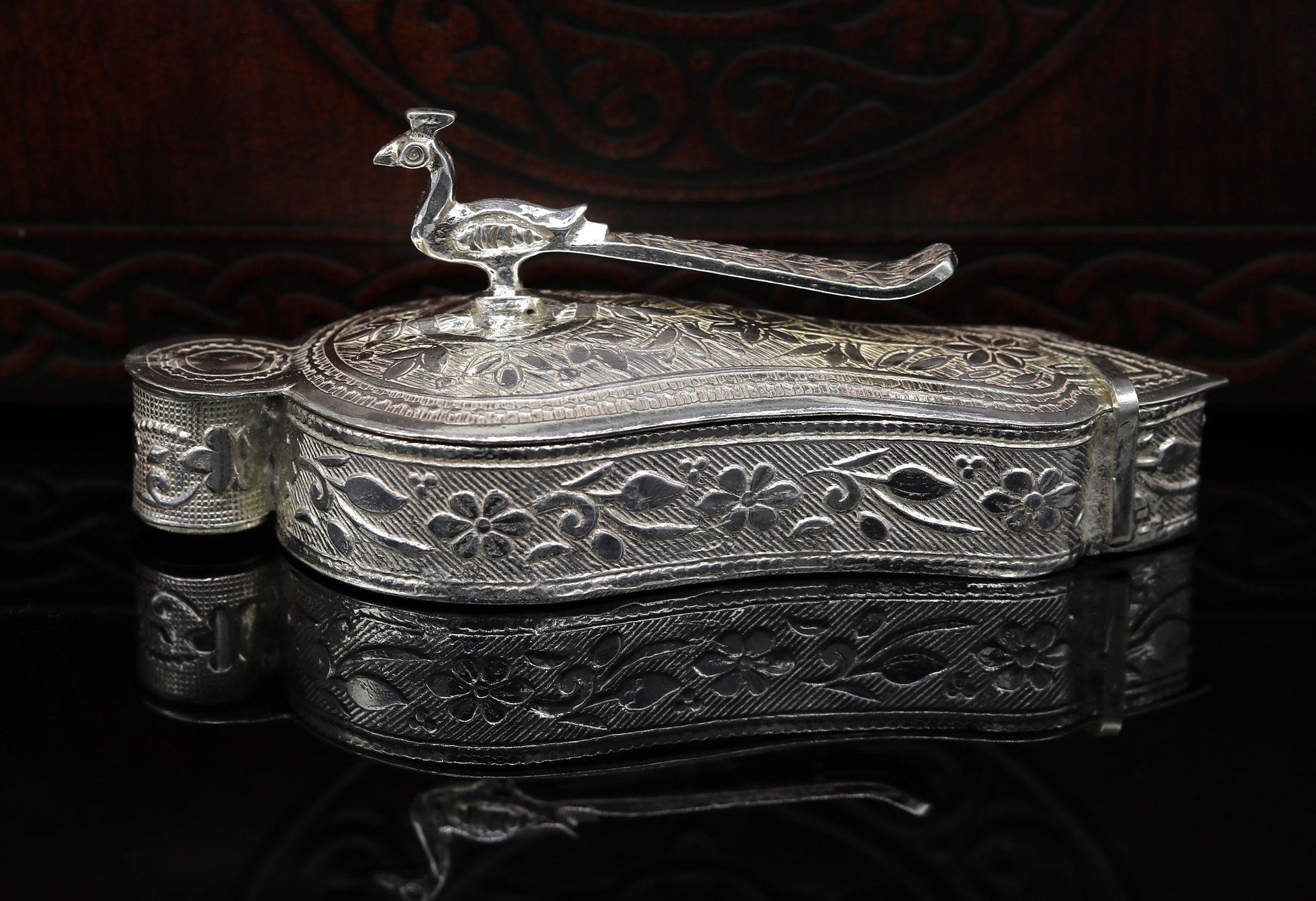 925 sterling silver handmade fabulous unique design peacock trinket box, brides gift, casket box, silver article, silver utensils su65