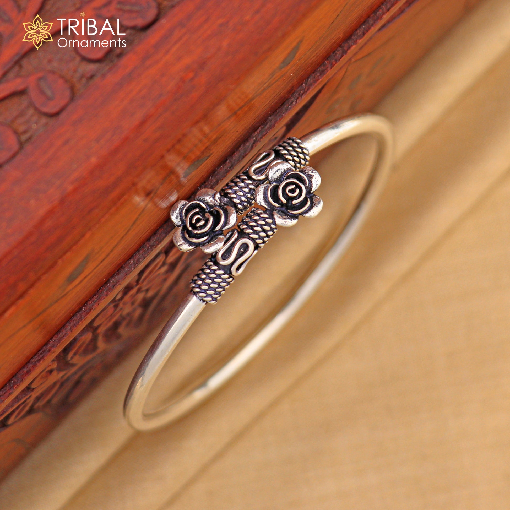 925 sterling silver handmade flower design stylish kada bangle bracelet tribal jewelry nsk874