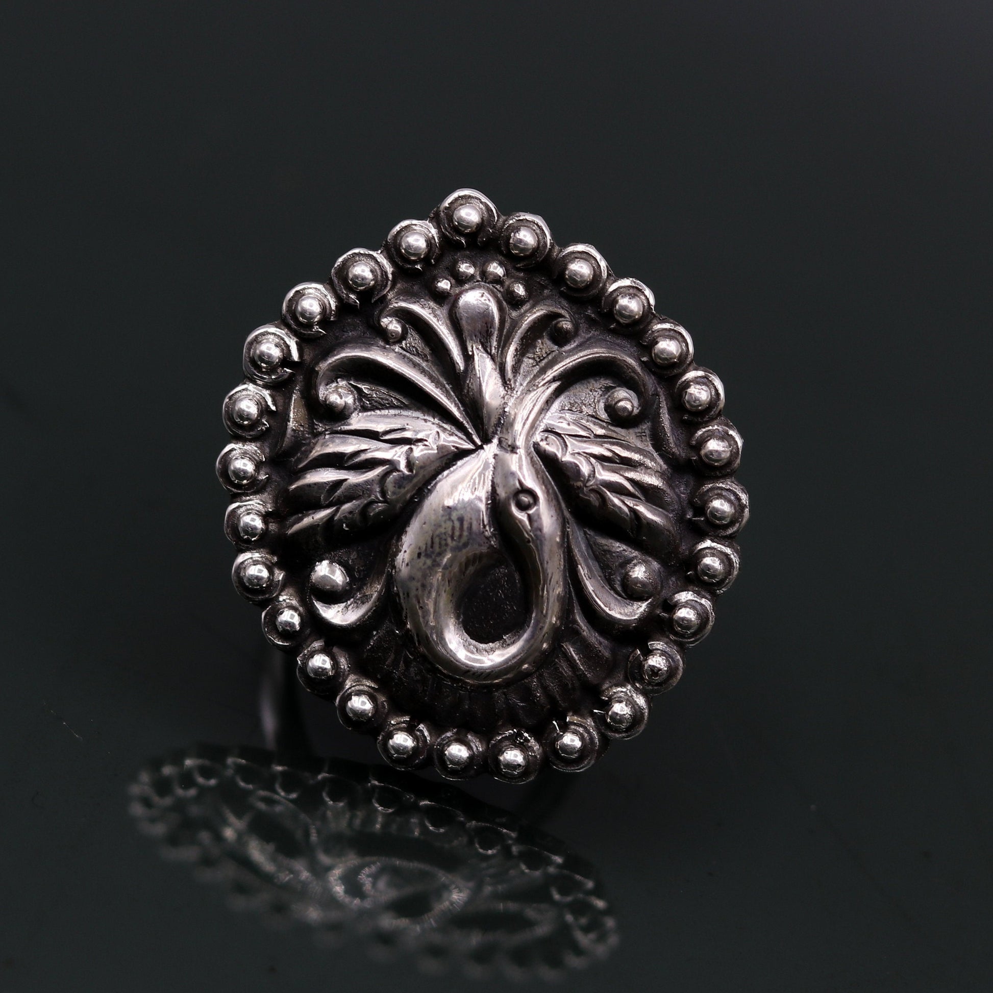 925 Sterling silver handmade gorgeous peacock design amazing pretty adjustable ring tribal jewelry temple ring sr234