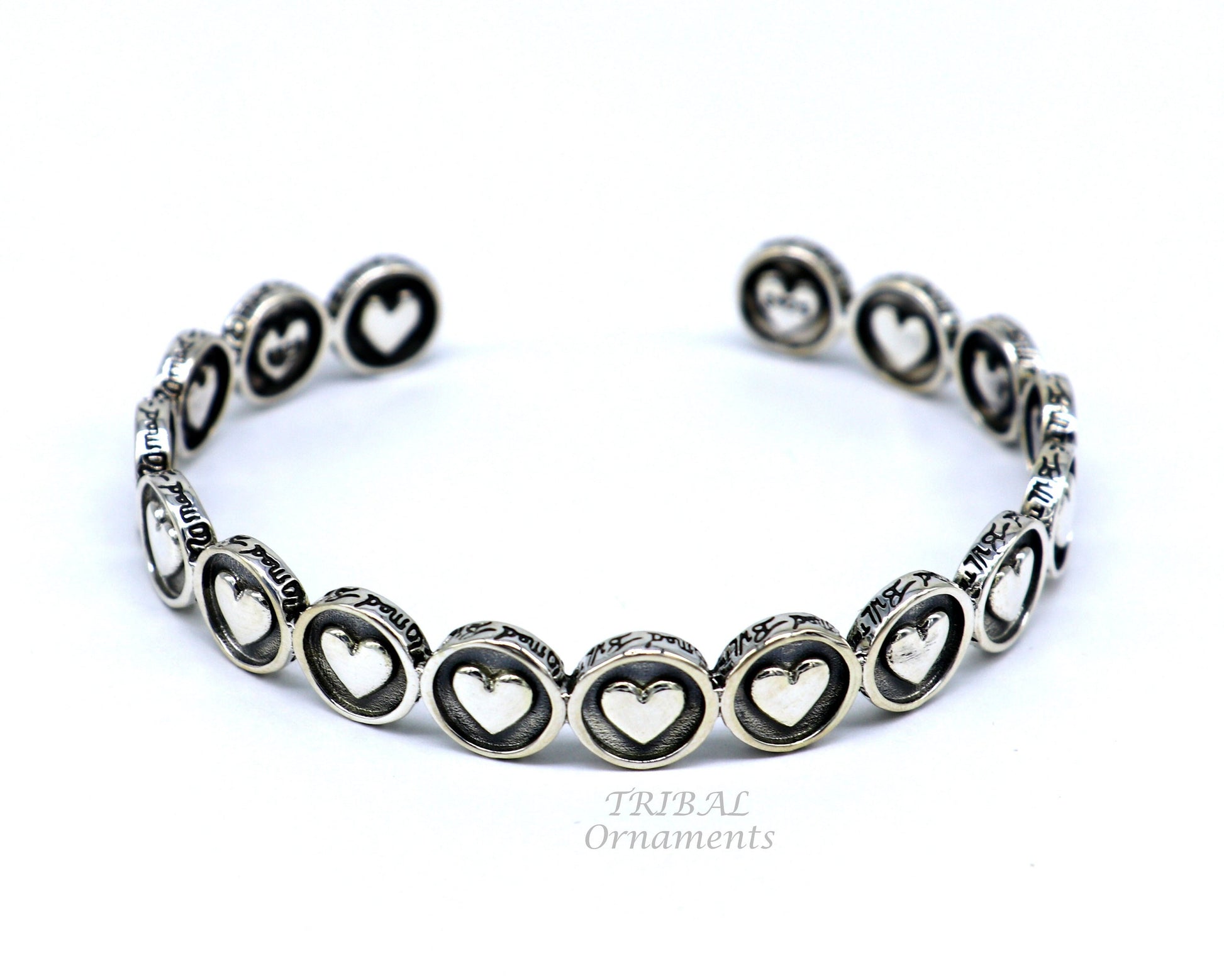 925 sterling silver handmade heart shape design Bangle cuff bracelet adjustable kada, best unisex tribal ethnic gifting jewelry cuff103
