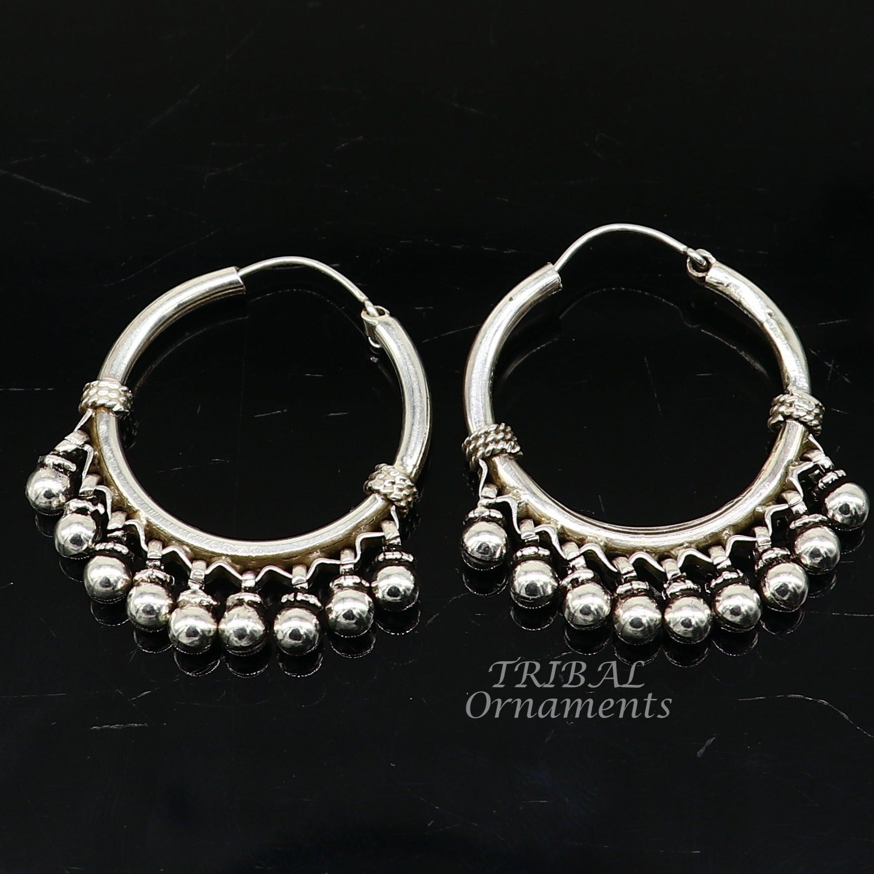 925 sterling silver handmade hoop earring elegant delegate Bali, hanging bells, hook, hoop gifting gorgeous tribal customized jewelry s1115
