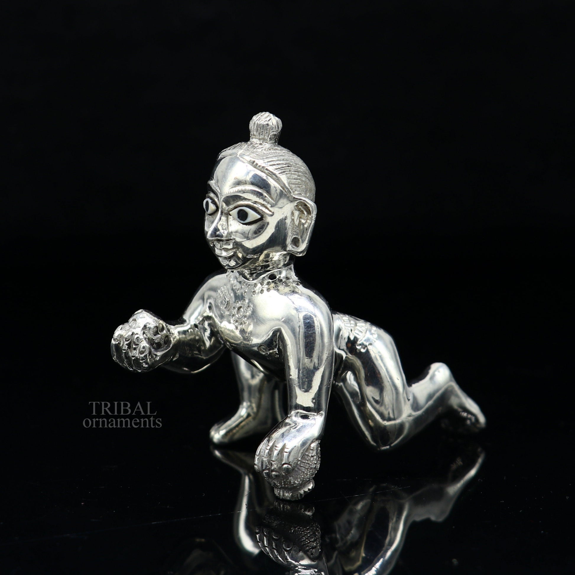 925 sterling silver handmade idol divine Krishna, Ladu Gopal, crawling Krishna small statue sculpture home temple puja art art494