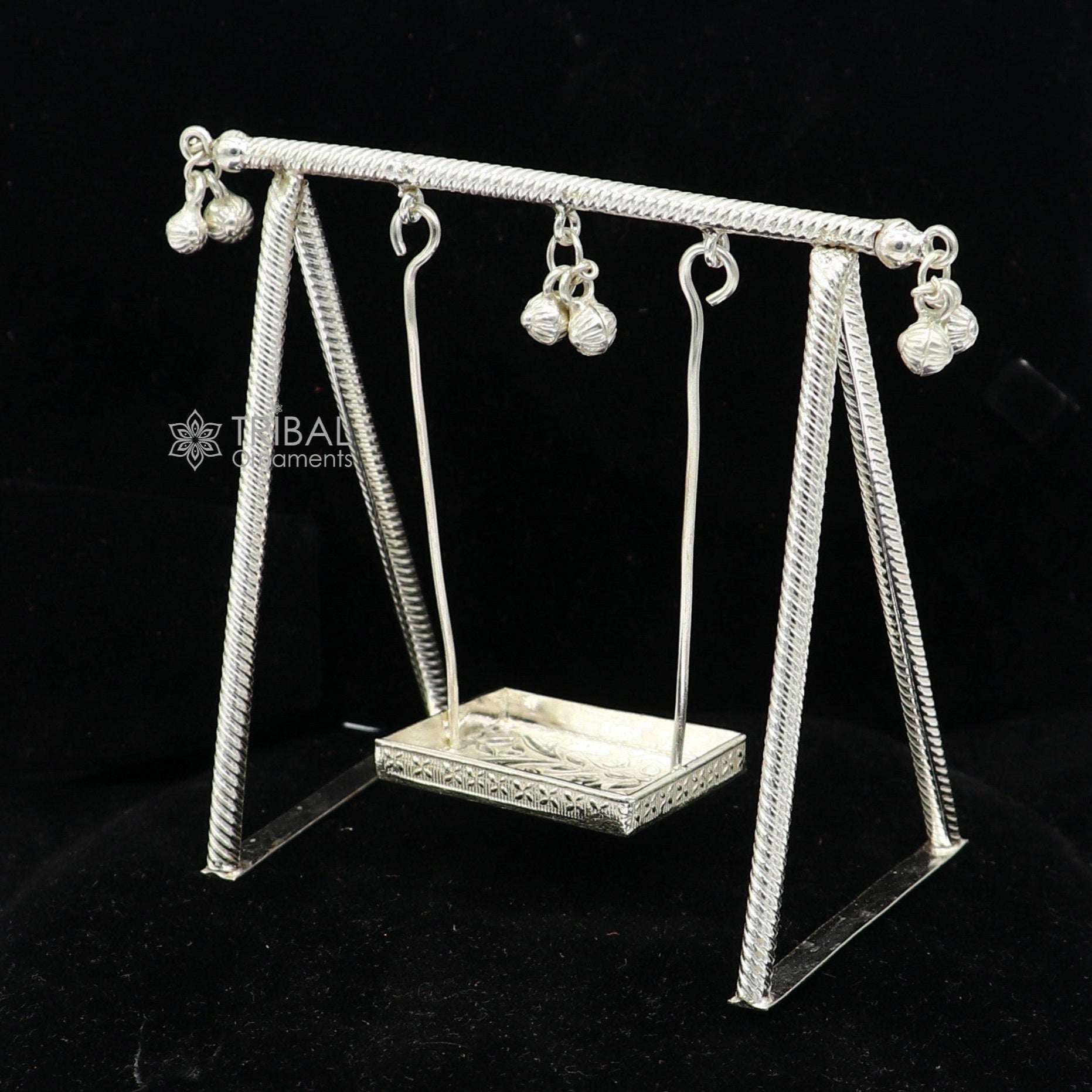 925 Sterling silver handmade Laddu Gopala child Krishna swing, child Krishna palana, silver jhula, laddu gopal jhula, silver art su1284